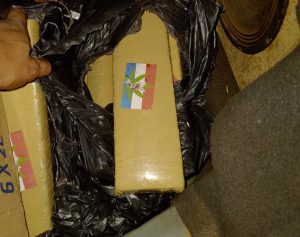 No momento em que o autor, um homem de 27 anos, abriu a porta do veículo caíram várias cédulas de R$ 50 no chão, que somaram R$ 1.050,00. Dando sequência na abordagem, foi realizada a busca no veículo, que exalava forte odor de maconha, sendo localizado no porta-malas onze tabletes grandes de substância análoga a maconha, que pesaram 10,750 quilos, cinco pedaços pequenos do mesmo entorpecente que pesaram 392 dentro de um vasilhame de plástico onde havia também uma faca e uma colher e pedaços de plástico para fracionar e uma balança de precisão.