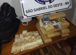 No momento em que o autor, um homem de 27 anos, abriu a porta do veículo caíram várias cédulas de R$ 50 no chão, que somaram R$ 1.050,00. Dando sequência na abordagem, foi realizada a busca no veículo, que exalava forte odor de maconha, sendo localizado no porta-malas onze tabletes grandes de substância análoga a maconha, que pesaram 10,750 quilos, cinco pedaços pequenos do mesmo entorpecente que pesaram 392 dentro de um vasilhame de plástico onde havia também uma faca e uma colher e pedaços de plástico para fracionar e uma balança de precisão.