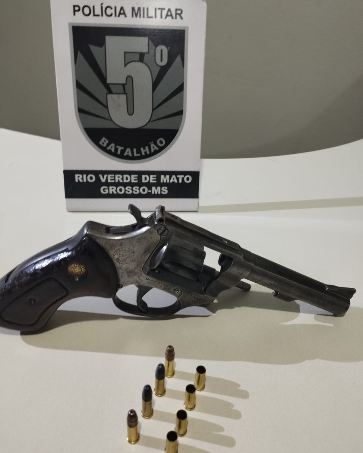 Ao chegar no endereço na Rua Marechal Rondon no Bairro Paraiso Cacerense, os policiais visualizaram um indivíduo com as mesmas características da denúncia e realizaram a abordagem. Durante a busca no interior do veículo, foi localizado embaixo da capa do banco do passageiro dianteiro um revólver marca Taurus, calibre .22.