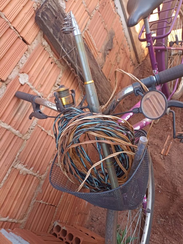 No momento em que a vítima estava ligando para a Polícia, o autor saiu correndo e pulou o muro sendo perseguido pela vítima e com apoio de uma testemunha conseguiram detê-lo. Ao fazer uma busca pelo local, foi possível constatar que o autor já havia retirado da residência uma bicicleta, uma extensão, uma chave de roda e um molinete que estavam do lado de fora da residência.