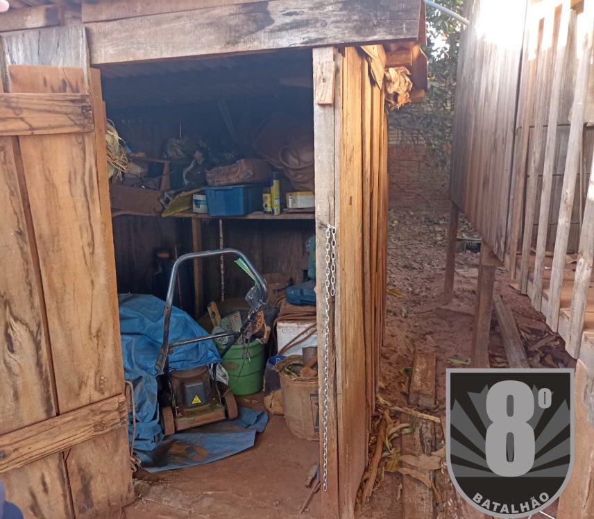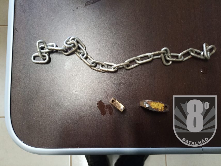 Esses objetos que foram subtraídos estavam em um cômodo nos fundos da residência fechados com corrente e cadeado, que foi quebrado pelo autor. Diante do flagrante, o autor foi conduzido para a Delegacia de Polícia Civil para o registro da ocorrência.