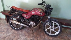 Foi dada ordem de parada, porém o condutor não acatou e empreendeu fuga avançando todas as placas de sinalização de parada obrigatória gerando perigo de dano sua integridade física e a dos demais usuários da via.Foi realizado o acompanhamento tático sendo que a equipe policial logrou êxito em abordá-lo no bairro Bela Vista. Após consulta do veículo no sistema policial foi constatado que a motocicleta estava com o licenciamento em atrasado. Ao realizar o teste do etilômetro, o resultado acusou concentração de 0,43 mg/l constatando crime de trânsito. Diante do flagrante foram tomadas as medidas administrativas de trânsito estabelecidas no Código de Trânsito Brasileiro referente ao acidente, confeccionado o boletim de ocorrência e o autor apresentado na delegacia de Polícia Civil juntamente com o veículo.