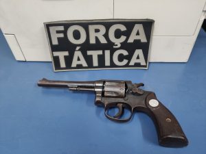 Diante das informações foi realizado a abordagem de um taxista na Rua Nioaque, próximo a Av. Júlio de Castilho, um veículo Voyage, durante a revista pessoal nada foi encontrado, em seguida foi realizado a revista no veículo, onde foi encontrado uma arma de fogo, revólver Taurus calibre .32 de cor preta, com 5 munições.