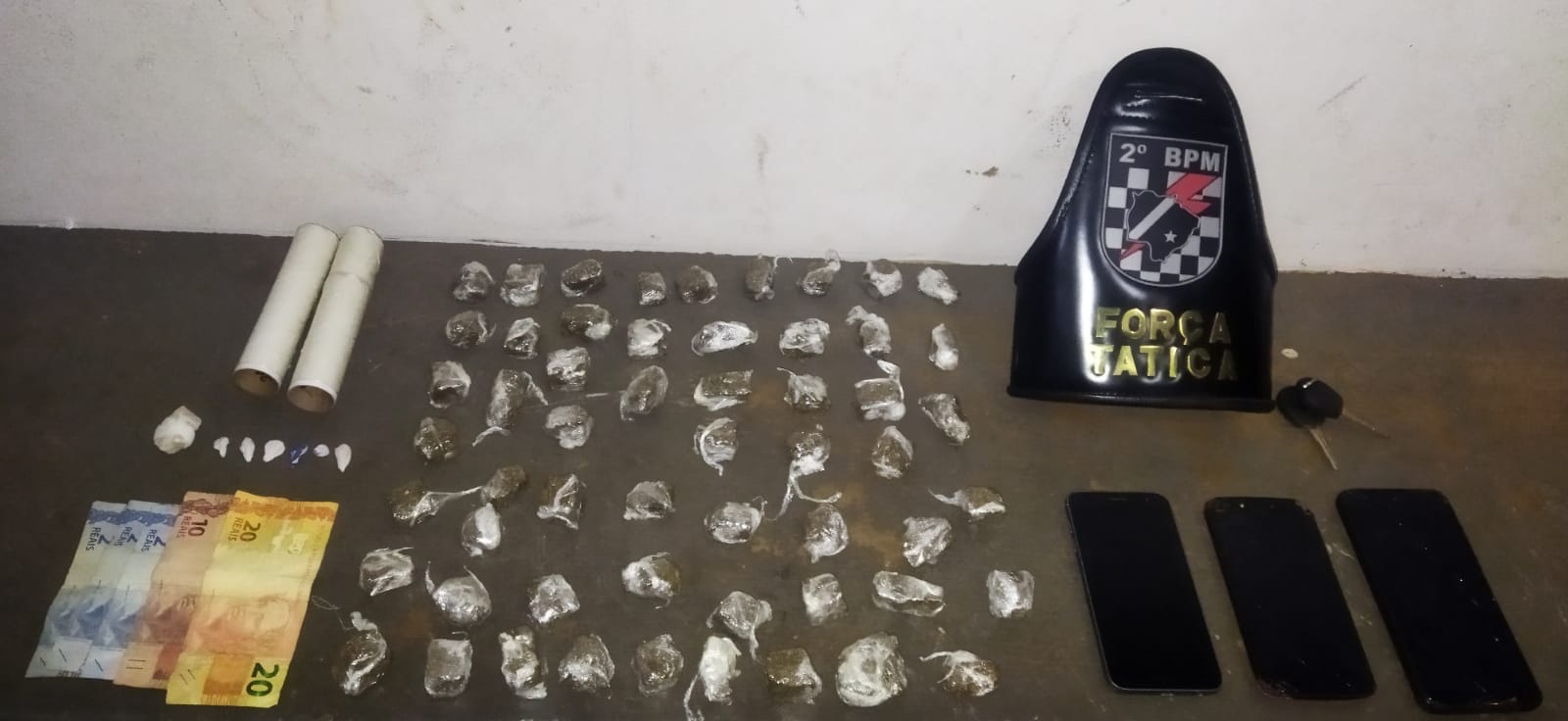Diante os fatos o abordado recebeu voz de prisão por tráfico de drogas e receptação e foi encaminhado a delegacia de polícia, onde foi apresentado juntamente com o material apreendido.