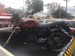 Ao realizar o acompanhamento tático, a equipe policial logrou êxito em abordar uma das motocicletas no Anel Rodoviário Fernando Lima de Vasconcelos, cruzamento com a Rua Odilon Ribeiro dos Santos, sendo uma Honda Titan vermelha de placa de Nova Andradina- MS. Ao tentar passar entre a viatura e o acostamento, o condutor se desequilibrou e caiu. Foi dada voz de abordagem não sendo atacada pelo jovem que empreendeu fuga a pé, sendo alcançado e contido pela equipe policial.