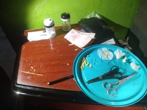 A GU PM há meses acumulava denúncias de moradores do bairro e informações verbais colhidas em abordagens a usuários de drogas na região, sendo constatado que o modus operandi se resumia na simples troca de valores, que variavam entre 2 e 10 reais, por pedras de crack. A transação ocorria através de uma brecha disposta no portão de correr da casa (único obstáculo de acesso) da autora. Foi informado ainda que toda a atividade era efetuada na presença de uma criança de aproximadamente 1 ano e 2 meses, filha da mulher.