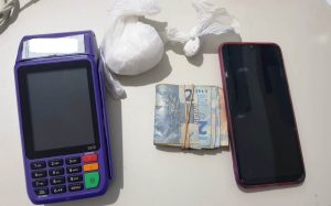 No local, os policiais entraram em contato com o casal, onde, a mulher, de 36 anos, disse aos policiais que registraria o Boletim de Ocorrência pela manhã, diretamente, na Delegacia de Polícia Civil. Já o homem, de 45 anos, relatou que a esposa o ameaça de morte, pois não aceita a separação. Ele disse, ainda, que a mulher vende drogas e entregou à guarnição uma porção de cocaína e uma máquina de cartão de crédito, que afirmou ser de sua esposa e que a suspeita utiliza a máquina para receber dos clientes, os pagamentos pela droga.