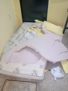 Por volta das 12h, agentes penitenciários notaram um volume incompatível em um colchão trazido pela visitante e ao verificarem, localizaram 05 (cinco) pacotes de uma substância análoga a cocaína pesando um total de 2 quilos e 103 gramas.