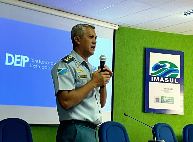 A instrução foi realizada no auditório do Instituto de Meio Ambiente de Mato Grosso do Sul – IMASUL, tendo como palestrante o Diretor de Instrução e Pesquisa da PMMS, Coronel PM, Airton Leonel Praeiro.