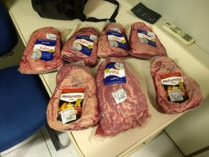 A Equipe Policial Militar deslocou até o local indicado pelo CIOPS, e entrou em contato com o gerente do supermercado, que informou que o autor estava com 7 peças de carnes nobres, como picanha, maminha e cupim, totalizando o valor de R$343,16 conforme a nota, e que o mesmo estava saindo do supermercado com o carrinho de compras, quando a “prevenção” se aproximou do mesmo, ele tentou fugir e foi detido no estacionamento.