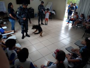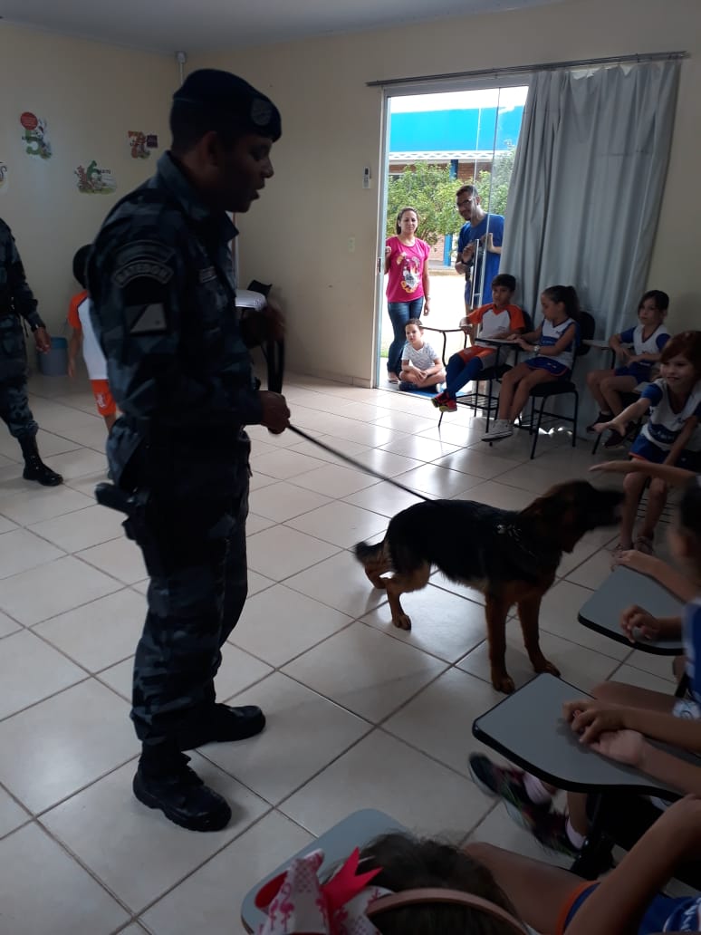 A apresentação ficou a cargo dos policiais militares do Canil da Força Tática que realizaram diversas apresentações com os cães aos alunos da Escola particular Enom que puderam conhecer e prestigiar os animais.