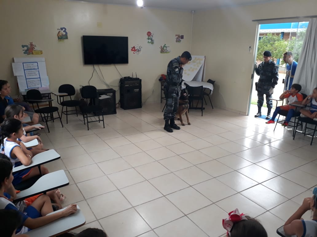 Coxim (MS): A polícia militar realizou ontem (08/10) apresentações aos alunos da escola Enom em comemoração ao dia das Crianças e ao Projeto Família de Sucesso em Coxim.