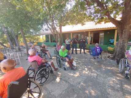 Em Pedro Gomes, a equipe da Polícia Militar esteve no Lar dos Idosos, na Rua Campo Grande, nº 57, Centro, onde o momento foi marcado por conversas, registros fotográficos e interação com os residentes.