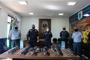 Campo Grande (MS) – A Polícia Militar do Estado de Mato Grosso do Sul realizou nesta quinta-feira (21/05), a doação de 150 revólveres calibre 38 para a Guarda Municipal de Campo Grande. A entrega aconteceu no Quartel do Comando Geral, no Gabinete do Comandante-Geral, Coronel PM Waldir Ribeiro Acosta e contou com a presença do Comandante da Guarda Civil Municipal, Anderson Gonzaga da Silva.