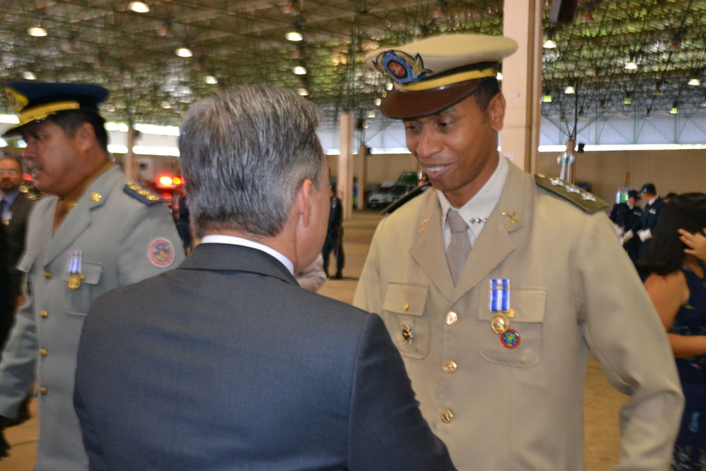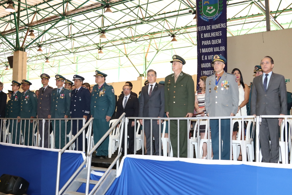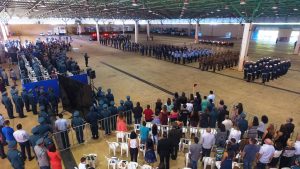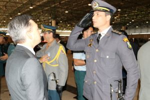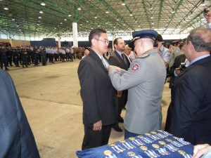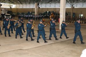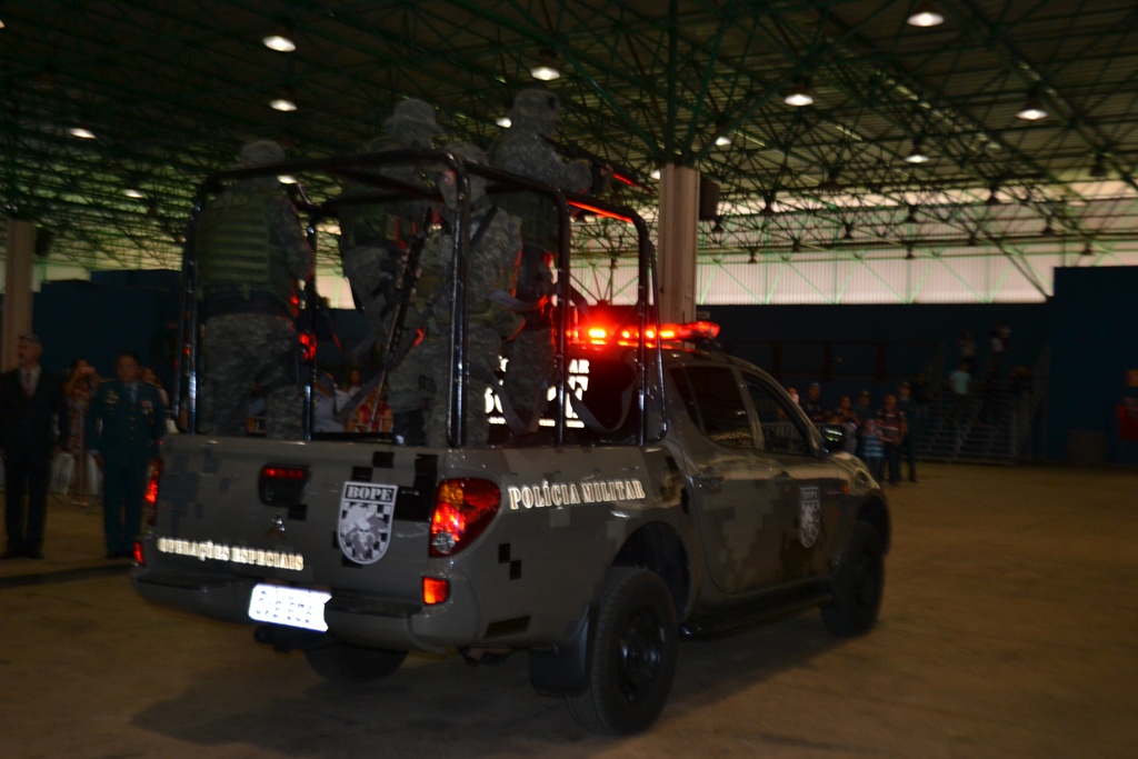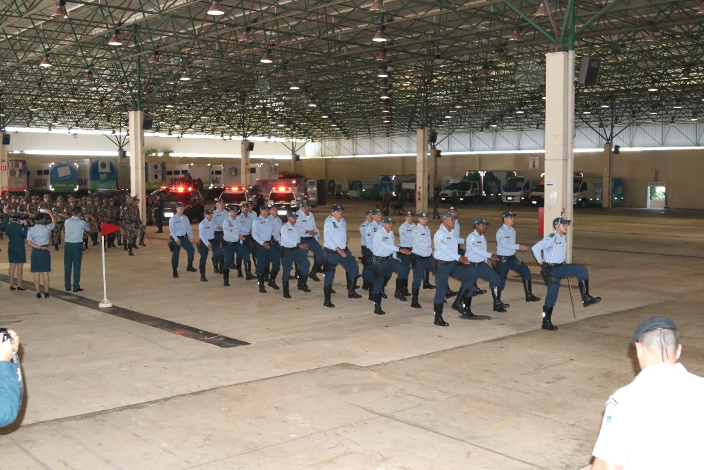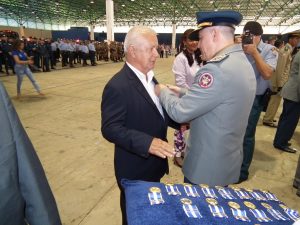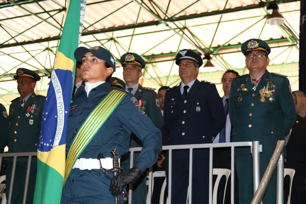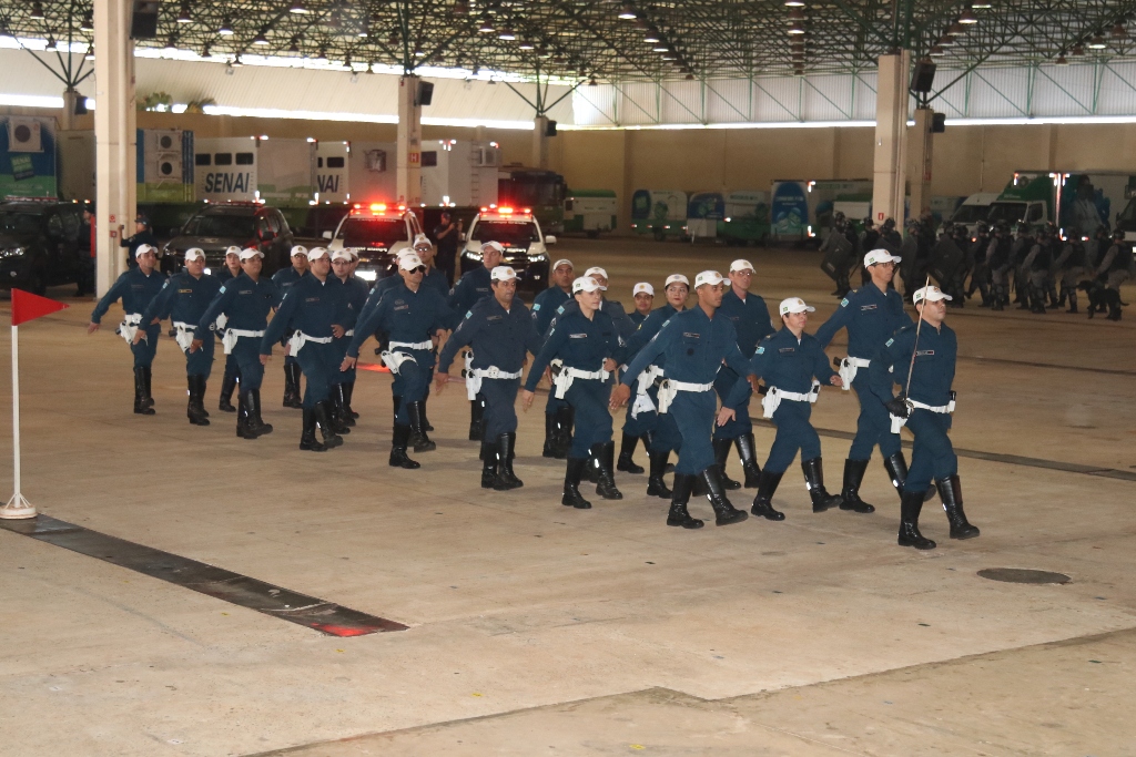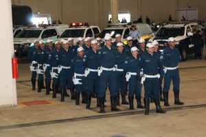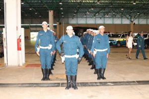 Após as falas das autoridades, o desfile da tropa precedeu o encerramento e contou com apresentações do Batalhão de Operações Policiais Especiais – BOPE, do Batalhão de Choque – BPMChoque e de alunos do Grupamento Especializado com Apoio de Motocicletas – GECAM.