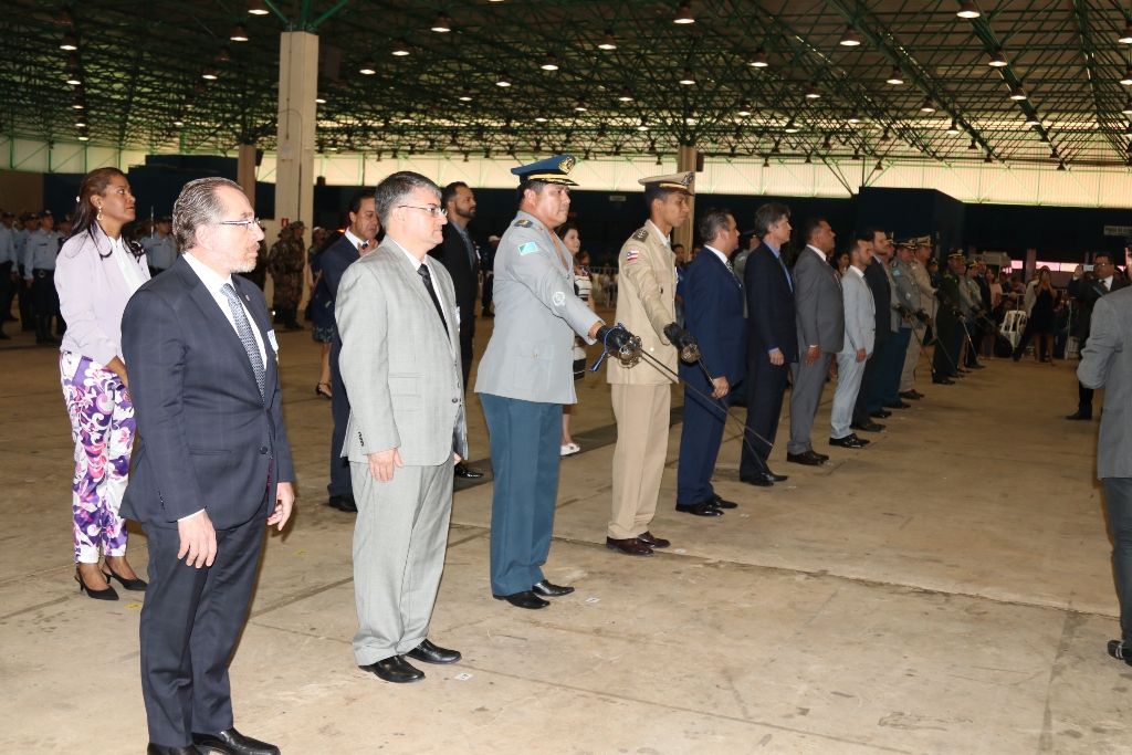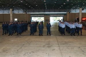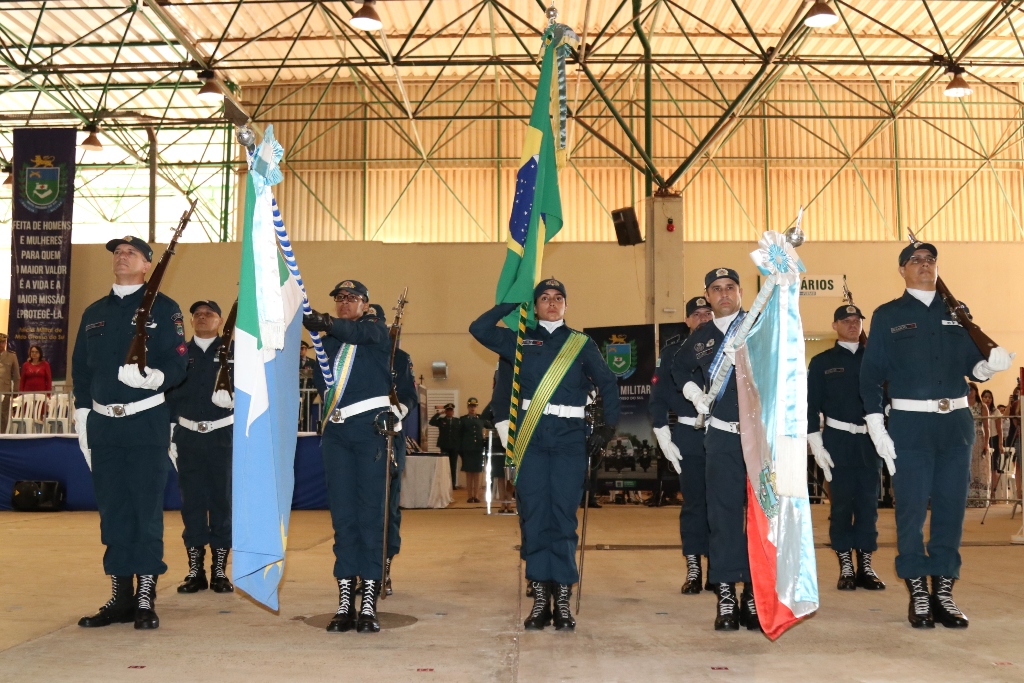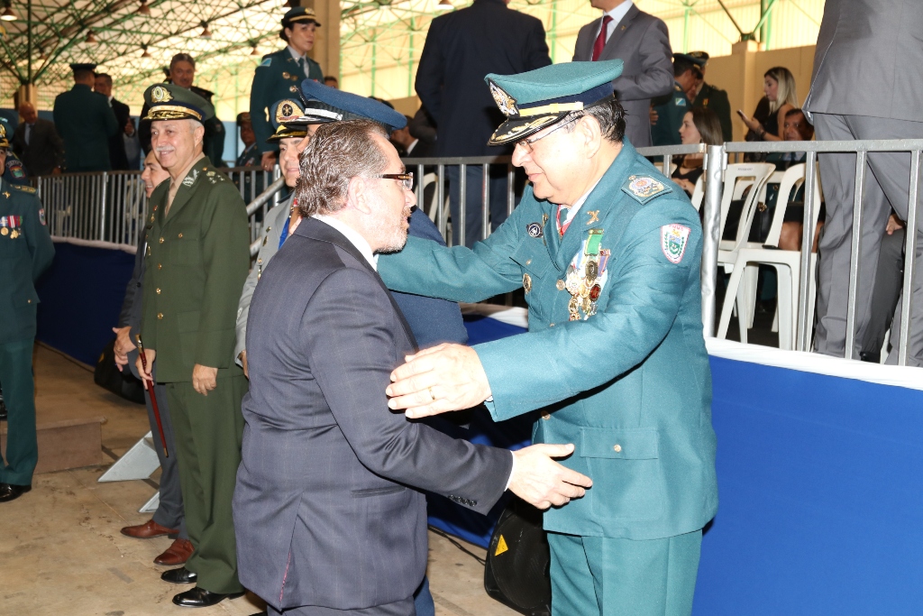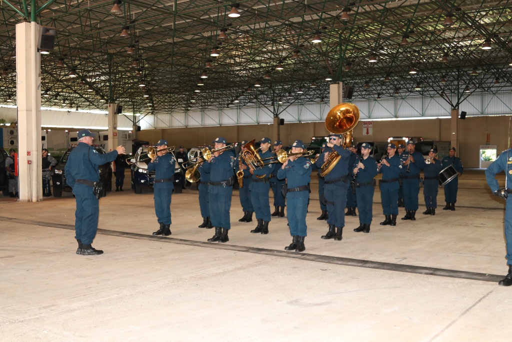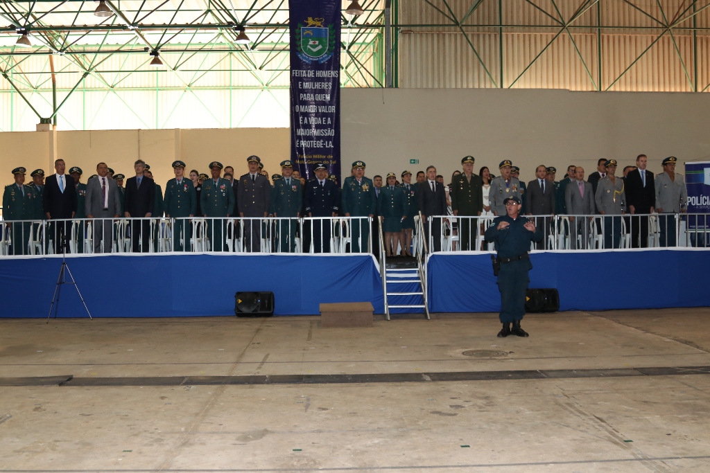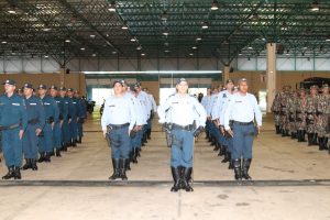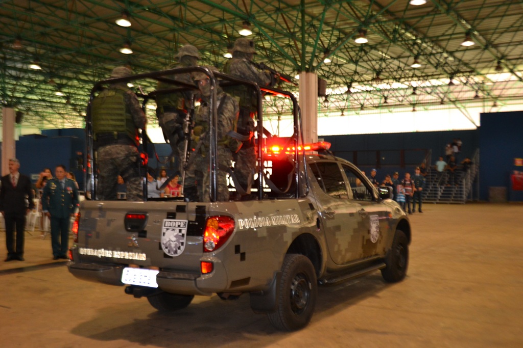 Após as falas das autoridades, o desfile da tropa precedeu o encerramento e contou com apresentações do Batalhão de Operações Policiais Especiais – BOPE, do Batalhão de Choque – BPMChoque e de alunos do Grupamento Especializado com Apoio de Motocicletas – GECAM.