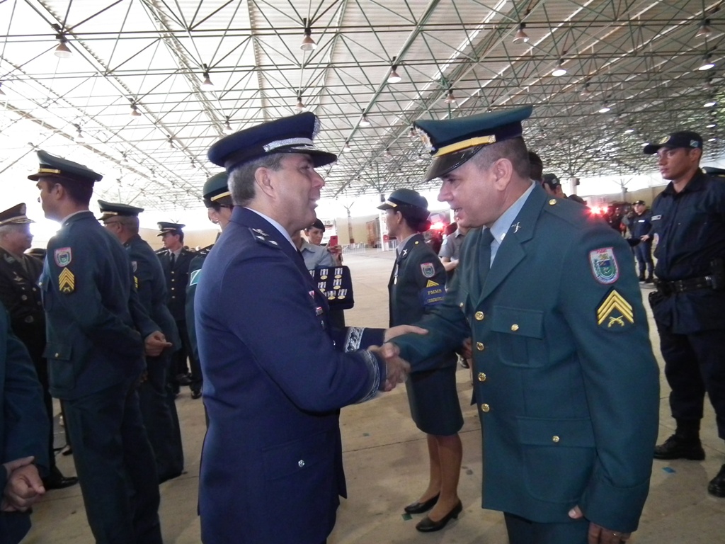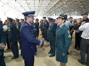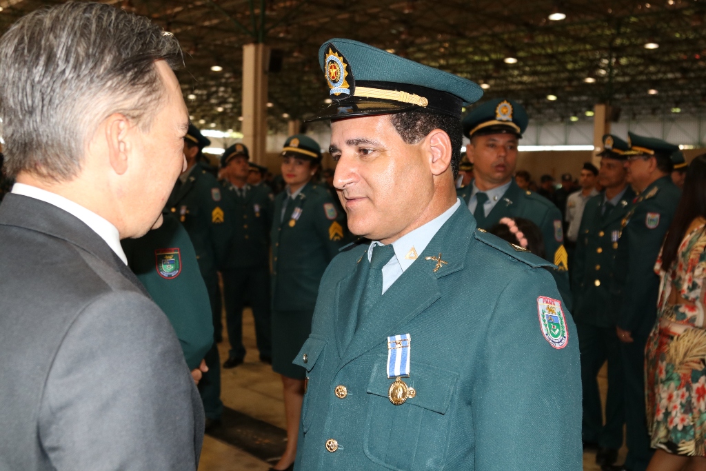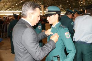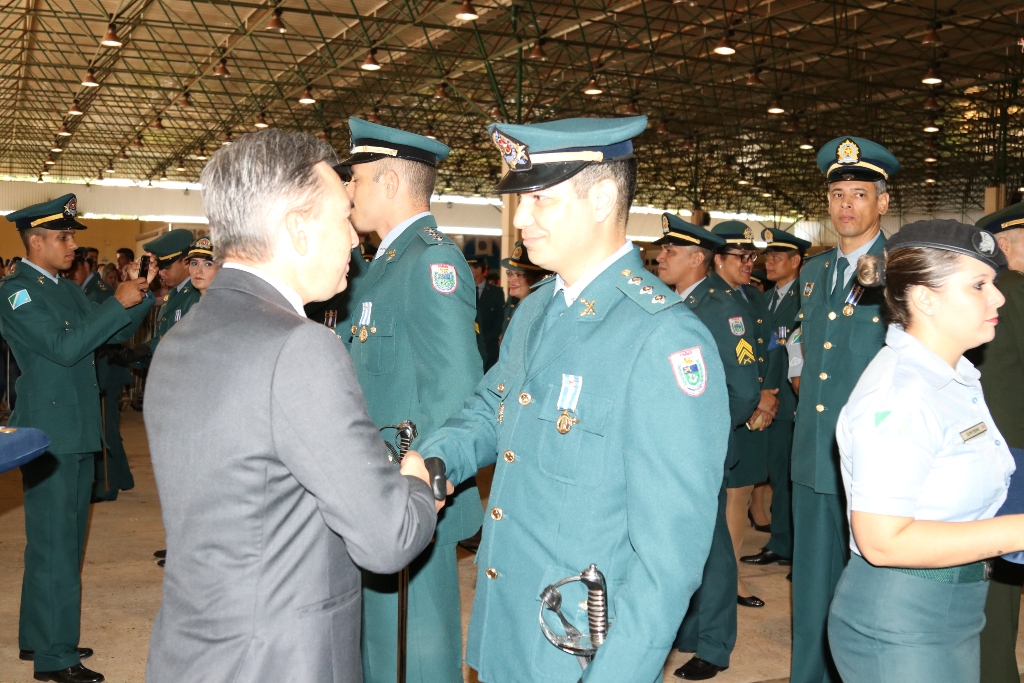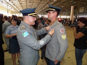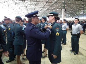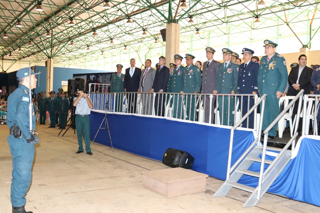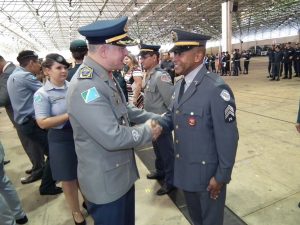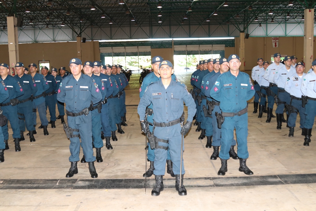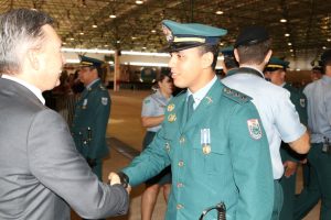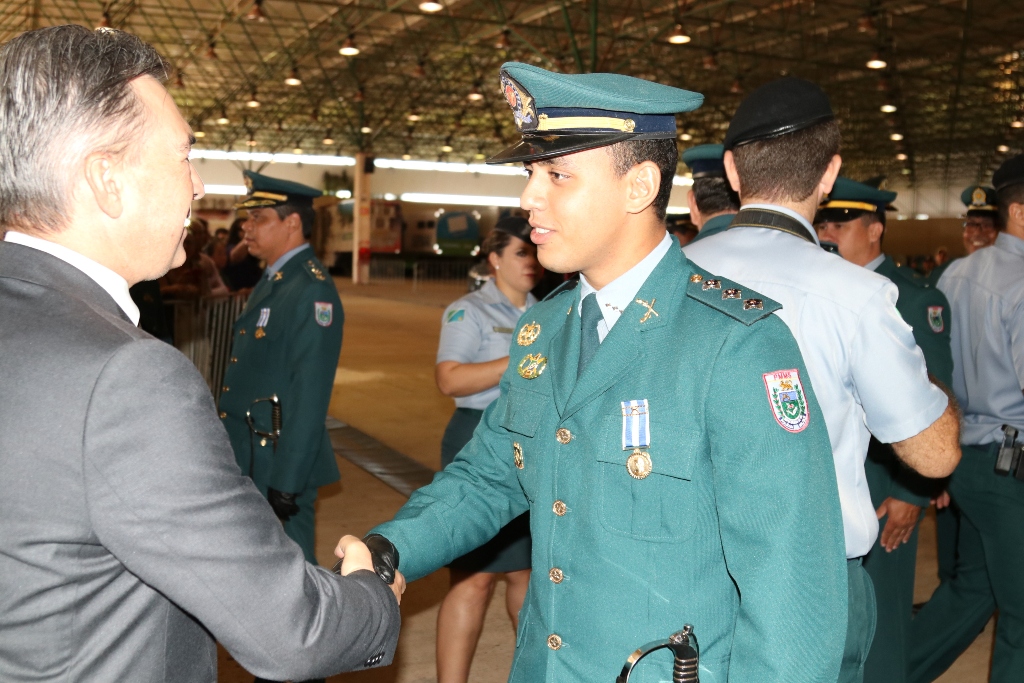 Após as falas das autoridades, o desfile da tropa precedeu o encerramento e contou com apresentações do Batalhão de Operações Policiais Especiais – BOPE, do Batalhão de Choque – BPMChoque e de alunos do Grupamento Especializado com Apoio de Motocicletas – GECAM.