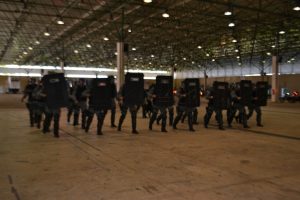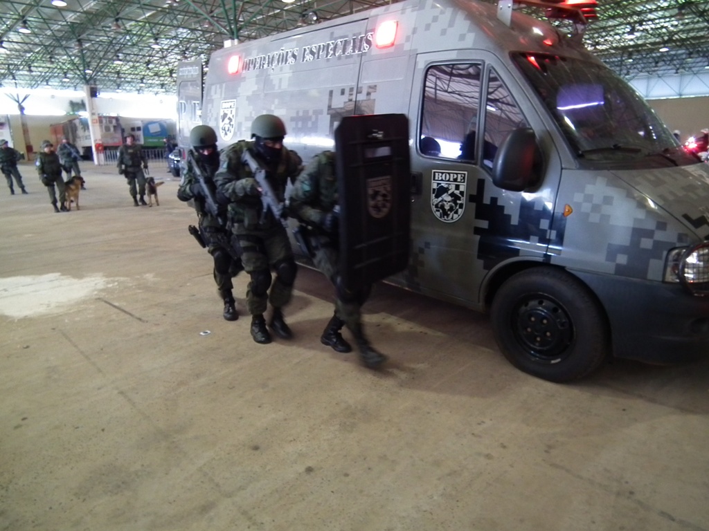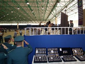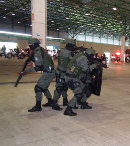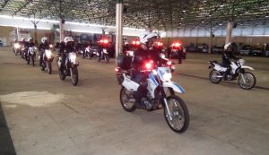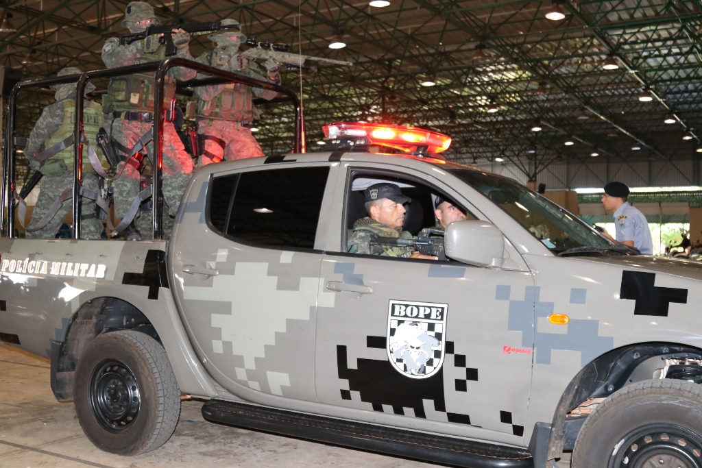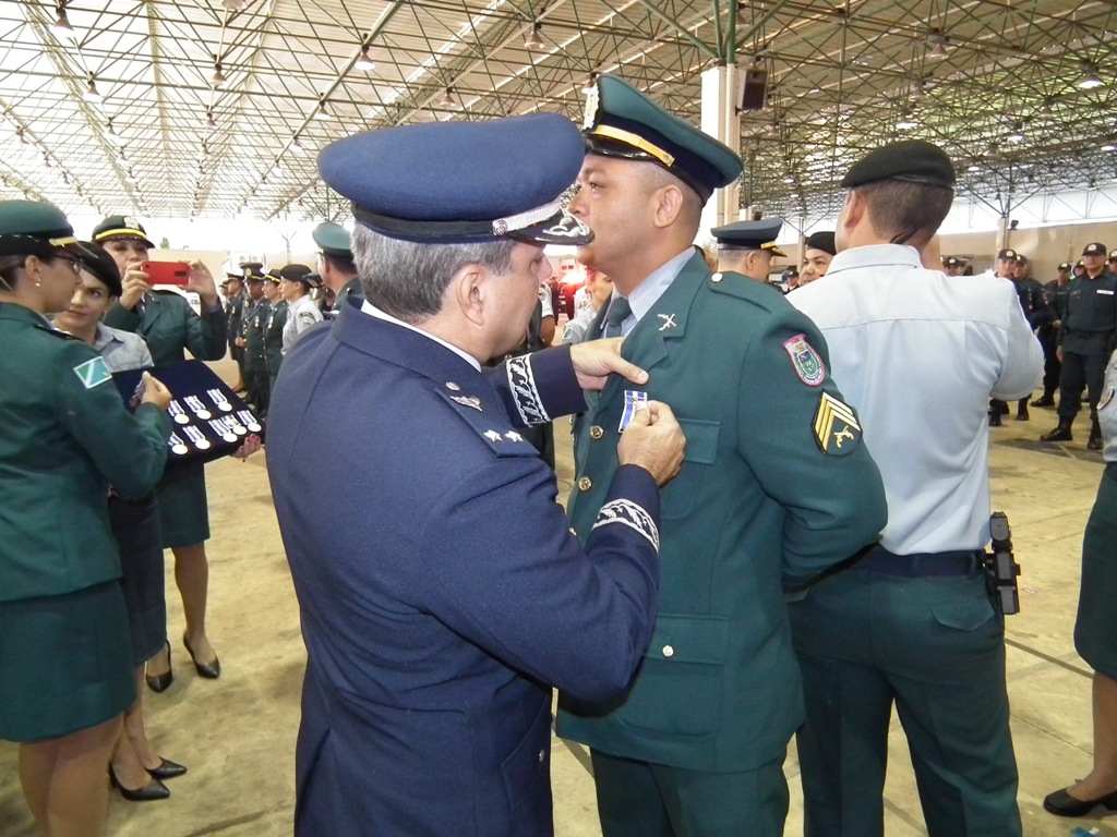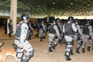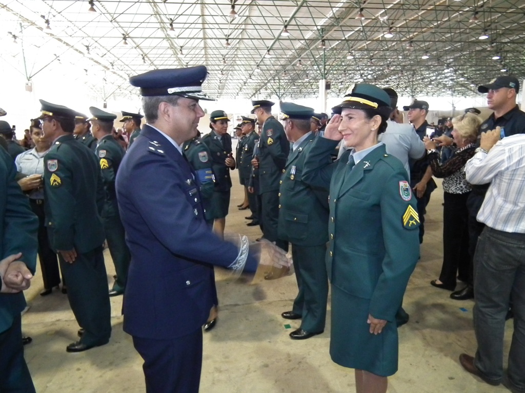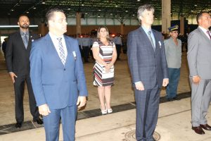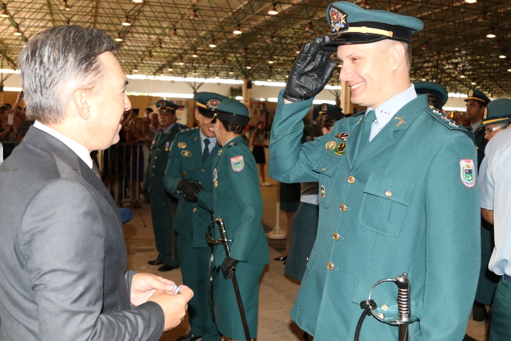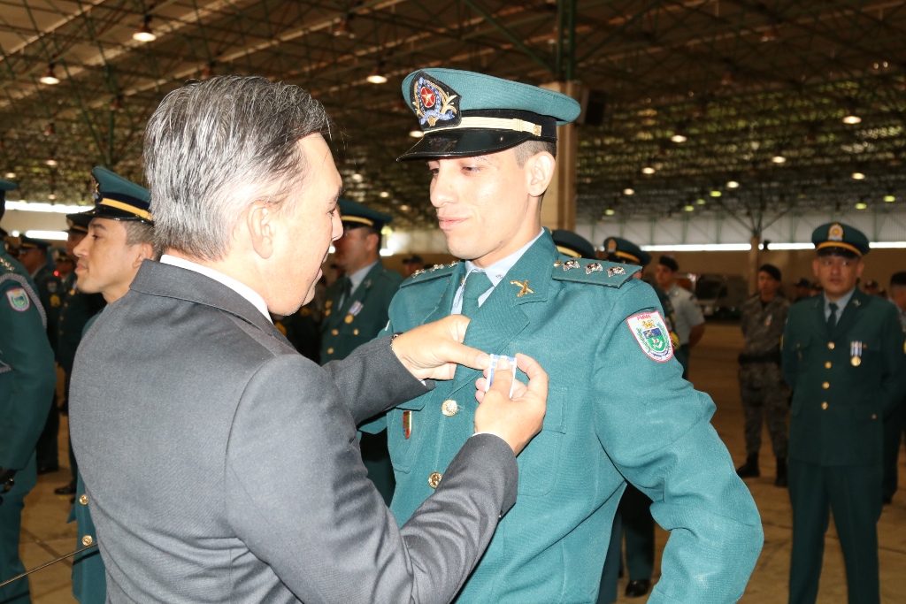 Após as falas das autoridades, o desfile da tropa precedeu o encerramento e contou com apresentações do Batalhão de Operações Policiais Especiais – BOPE, do Batalhão de Choque – BPMChoque e de alunos do Grupamento Especializado com Apoio de Motocicletas – GECAM.