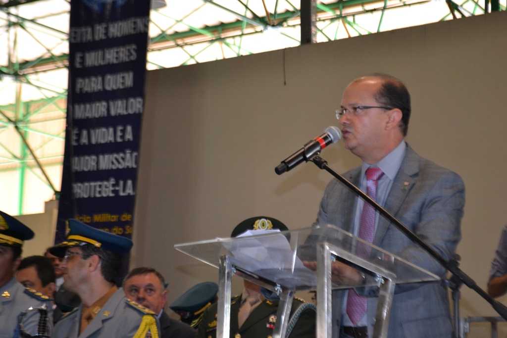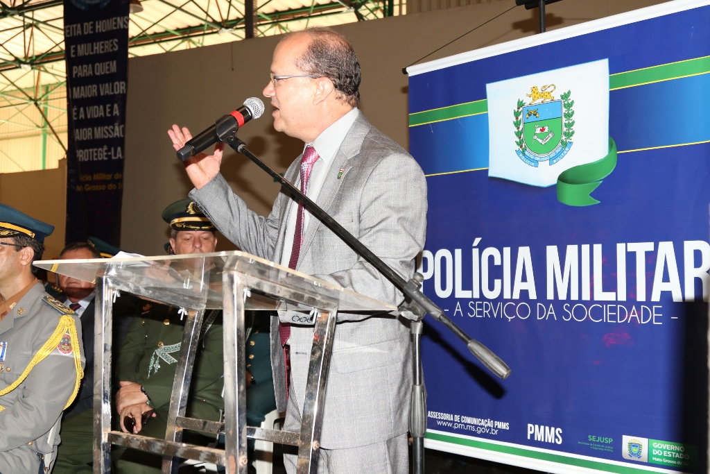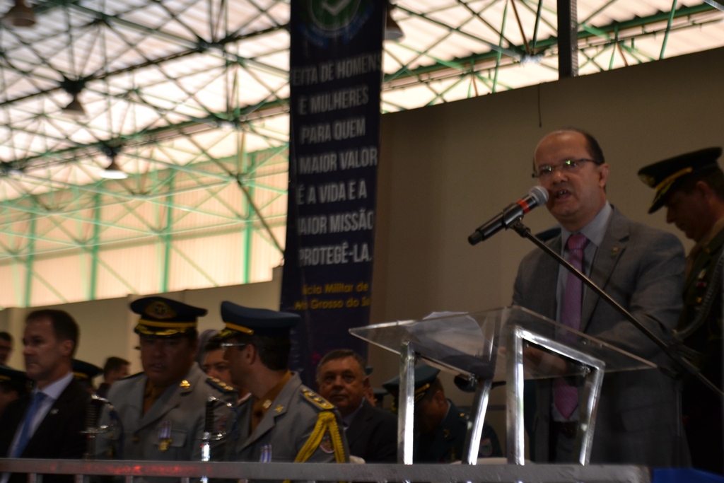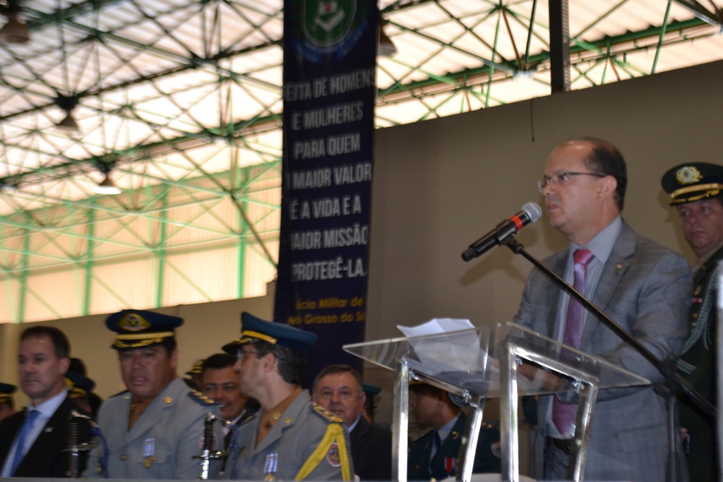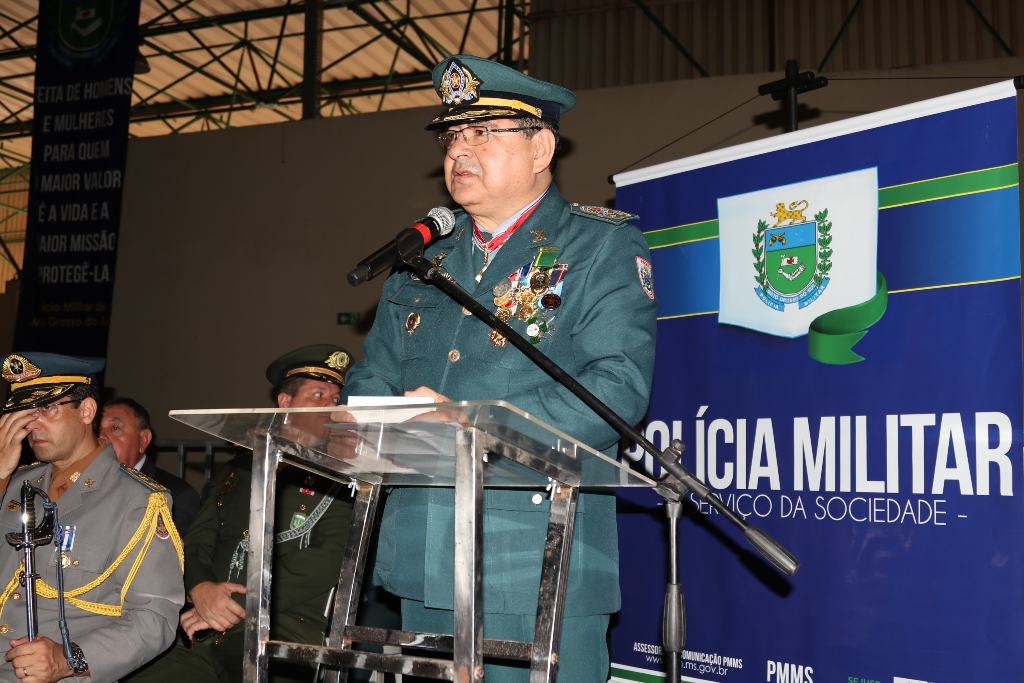 O Comandante-Geral da PMMS, coronel PM Waldir Ribeiro Acosta, falou aos agraciados e autoridades presentes sobre a importância da solenidade de outorga da Medalha Tiradentes em que se faz referência ao Patrono das Polícias Militares de todo o Brasil, parabenizando também todos agraciados por tão grande honraria recebida, que serve para enaltecer os relevantes serviços prestados à sociedade em prol do bem-estar e da Segurança Pública da população.