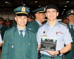 Primeiro colocado, Sargento PM Eduardo Pereira Souza, com a divisa entregue pelo Secretário de Estado de Justiça e Segurança Pública, Delegado Antônio Carlos Videira ;
