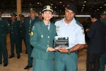 Terceiro colocado, Sargento PM Ricardo Lopes Paulino, com a divisa entregue pelo Comandante Geral da PMMS, Coronel PM Waldir Ribeiro Acosta.