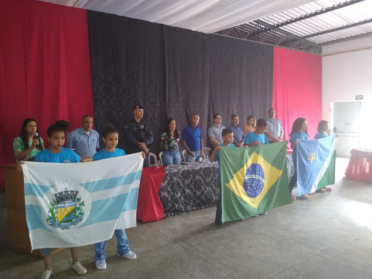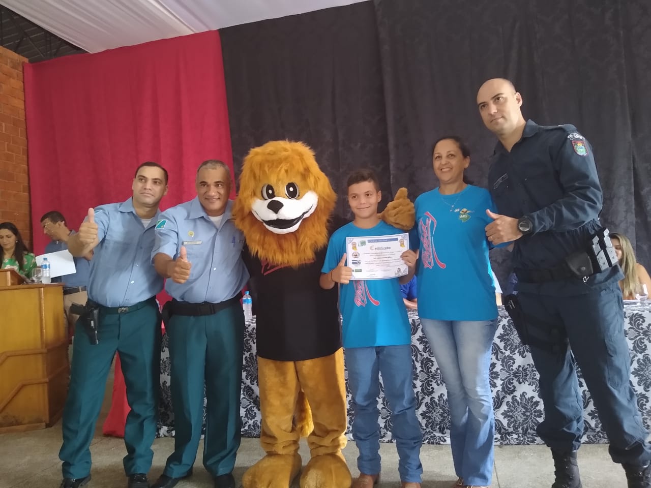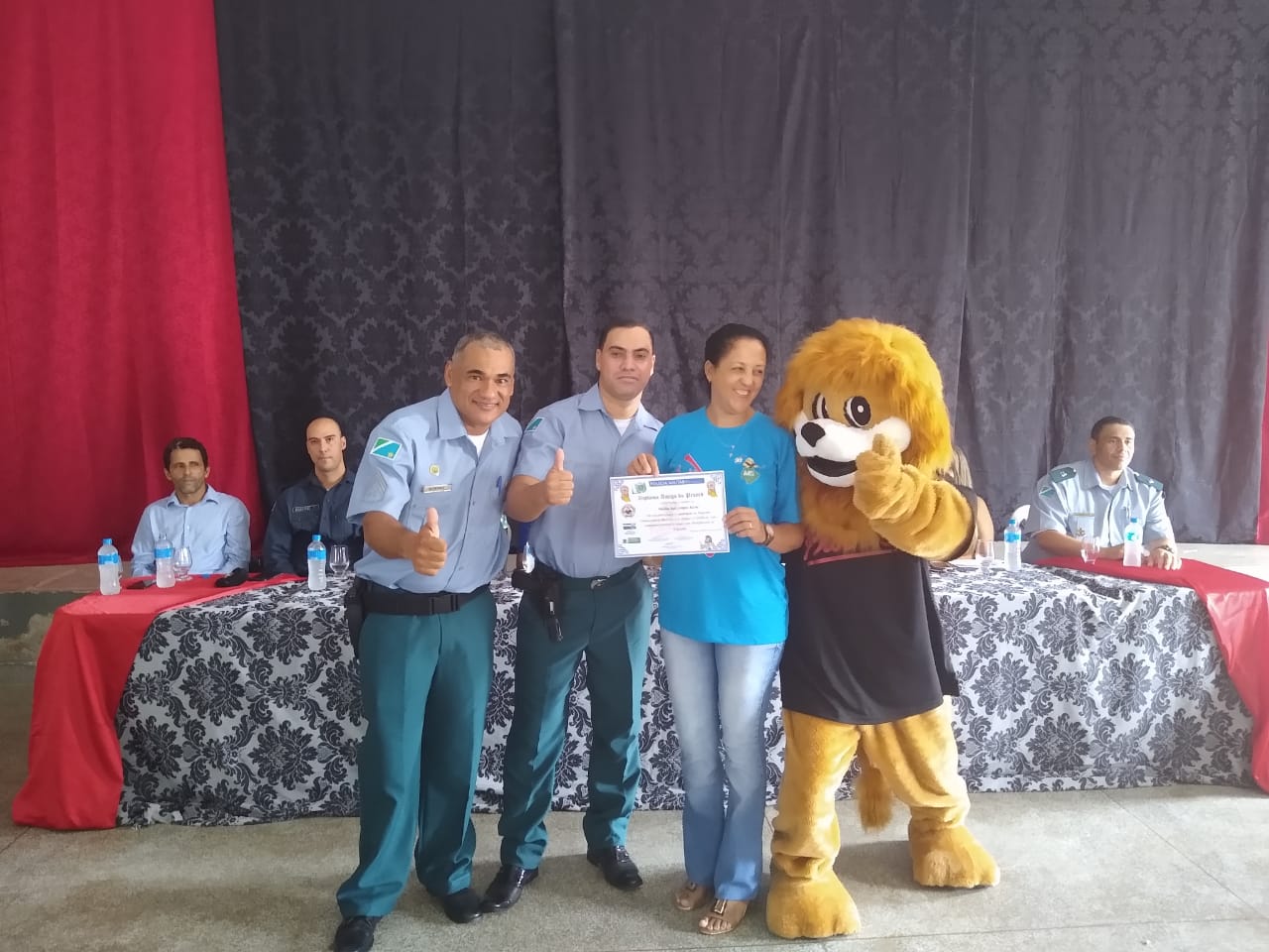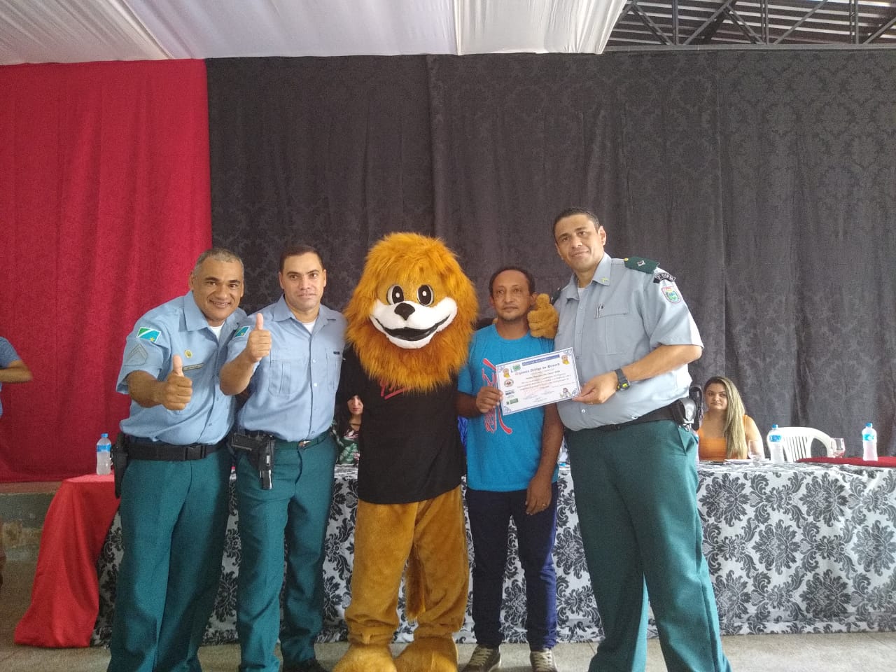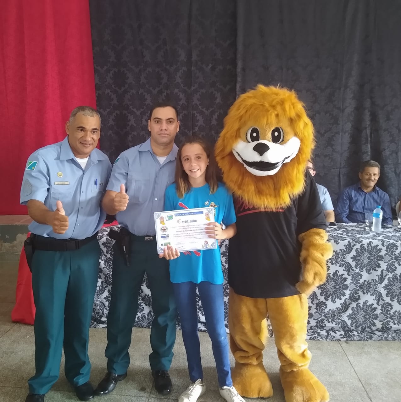 Estiveram presentes na cerimônia, o Comandante da 7ª CIPM, Tenente Coronel Ênio, o Comandante da PM em Santa Rita do Pardo, Tenente Valdemir Beloto, o Comandante da PM em Anaurilândia, Tenente Amaro, o Instrutor do PROERD em Anaurilândia, Sargento Edgar, a secretária municipal de educação, Sra Kátia Cristina, o vice-prefeito, Sr. José Milton de Souza, a diretora da escola, Sra Eunedir Gregório, alem de vereadores, empresários e familiares dos formandos.