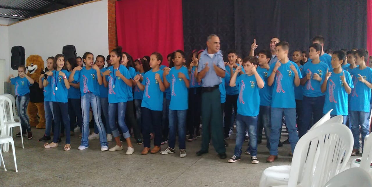 86 (oitenta e seis) alunos do 5º ano A, B e C da Escola Municipal Raimundo Candido de Araújo, tiveram aulas ministradas pelo Cabo PM Fábio durante todo o ano letivo, onde receberam instruções e orientações que visam prevenir o uso de drogas e a violência entre os estudantes.
