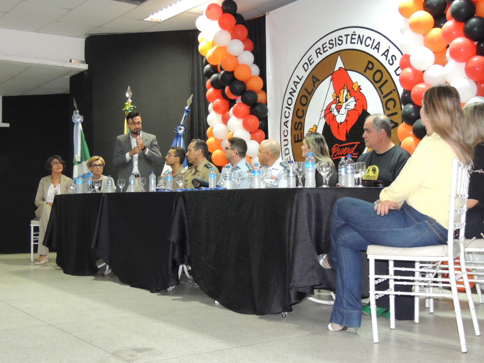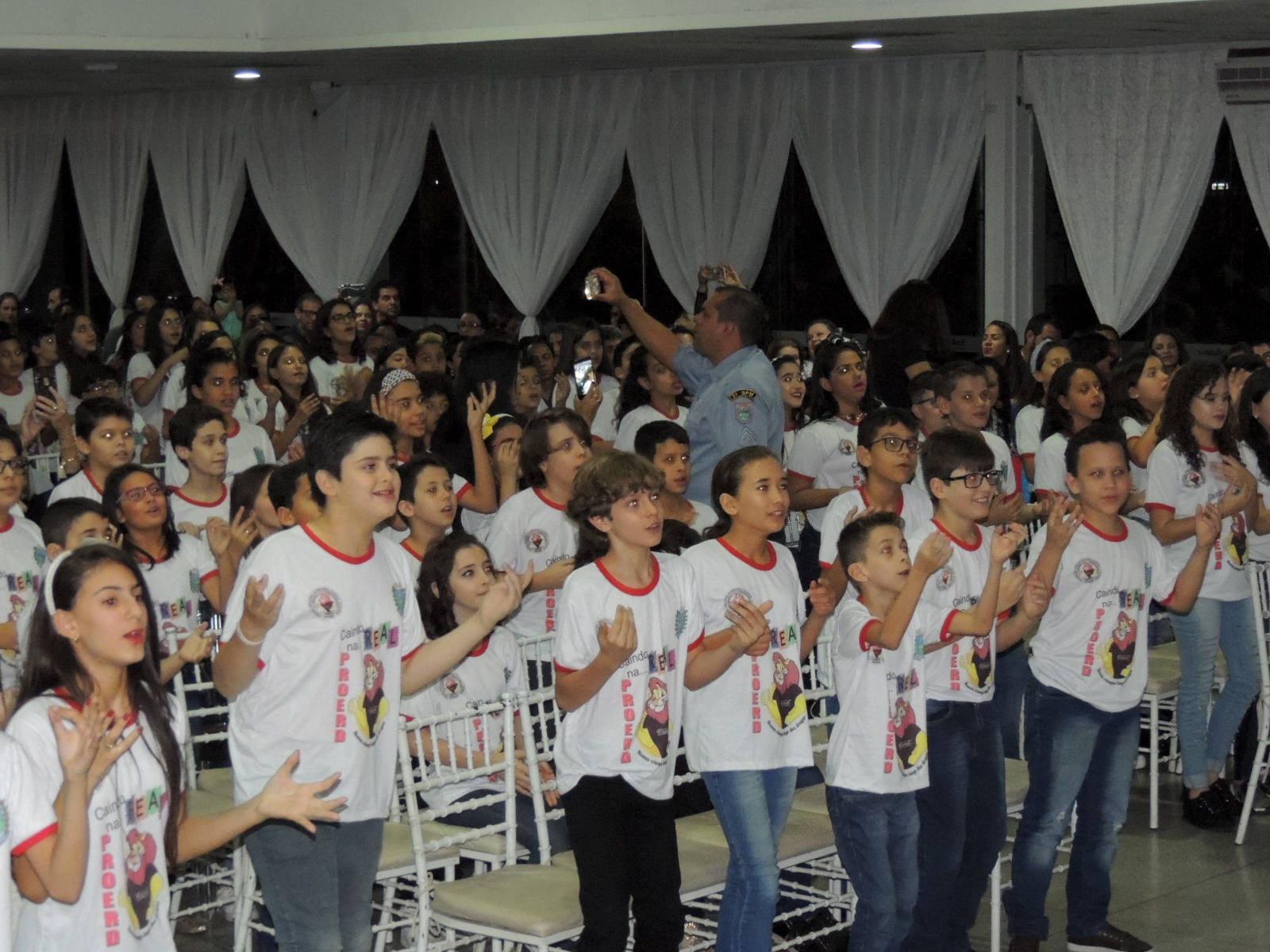 Três Lagoas (MS) – O 2° Batalhão de Polícia Militar, comandado pelo Major Ênio de Souza Soares, realizou na noite de ontem (31) a formatura do Programa Educacional de Resistência às Drogas e a Violência (PROERD).Durante a solenidade o Hino Nacional Brasileiro, foi tocado pela Banda Musical Cristo Redentor que abrilhantou o evento.