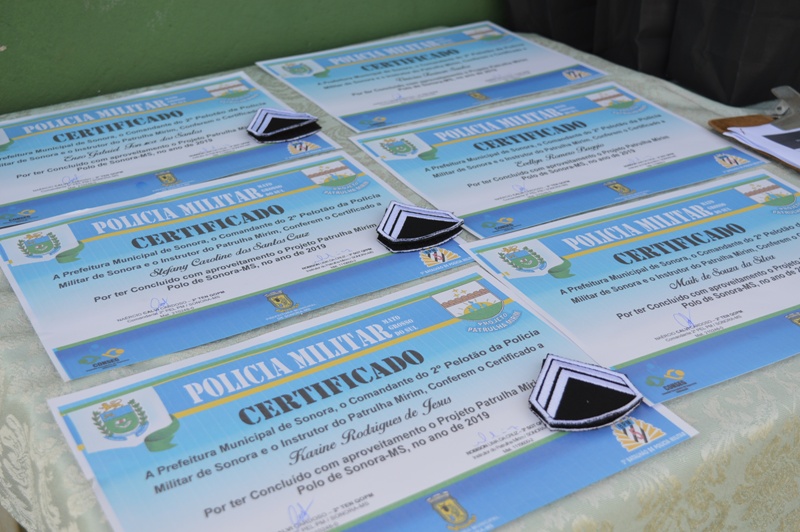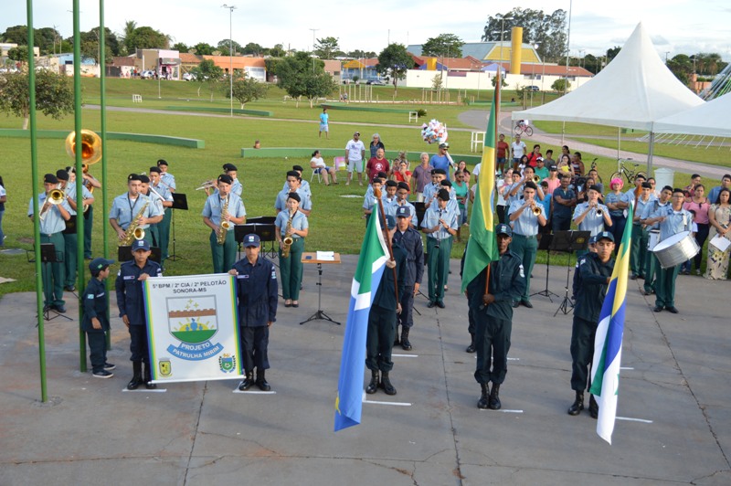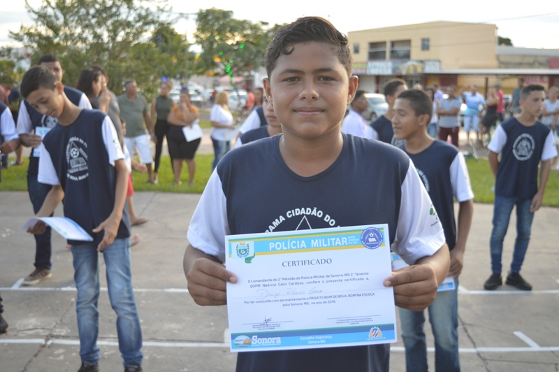 Coxim (MS): A Polícia Militar realizou na tarde de ontem (10/12) a solenidade de formatura de encerramento dos Projetos Patrulha Mirim e do Bom de Bola Bom na Escola (BBBE) em Sonora-MS.