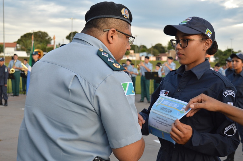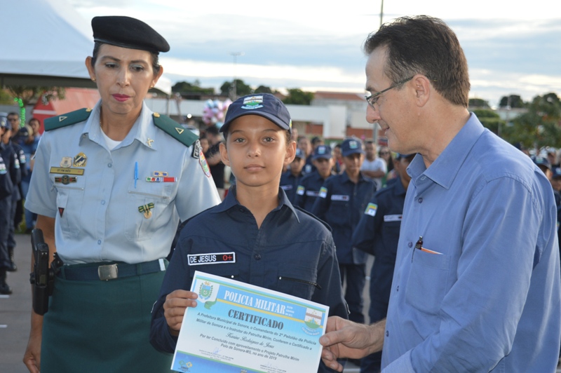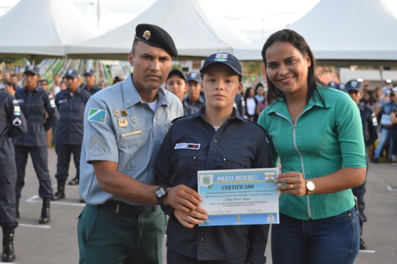 A cerimônia que teve a participação e animação da Banda Sinfônica Mirim da PMMS, foi marcada pelo juramento do Patrulheiro Mirim e à Bandeira Nacional, homenagem aos primeiros colocados e promoção a cabo e homenagens aos parceiros e instrutores.