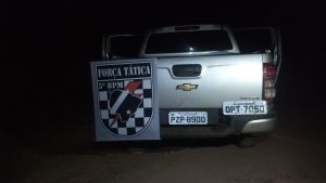 Imediatamente os militares deslocaram e localizaram uma grande quantidade de entorpecente escondido no meio do matagal e um veiculo com outras placas para ludibriar a fiscalização. Os policiais solicitaram o apoio da Equipe da Força Tática e tentaram localizar os suspeitos que permaneceram no local até parte da noite para tentar prender os autores que possivelmente tentariam resgatar a droga, porém não obtiveram êxito.