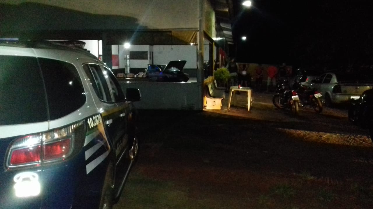 Em uma chácara foram identificadas irregularidades durante a promoção de uma festa e seus organizadores foram encaminhados para a delegacia onde responderão por exercício irregular de atividades. Os adolescentes que participavam do evento foram retirados pelo Conselho Tutelar que notificou os pais para conhecimento e efetuarem a liberação dos seus filhos. Foi fechado ainda um bar e seu proprietário também conduzido por exercício irregular de atividade.