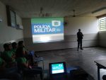 Os policiais militares Cb Cristaldo e Cb Moreira abordaram diversos assuntos como o bullying, a violência no ambiente escolar e o combate às drogas.