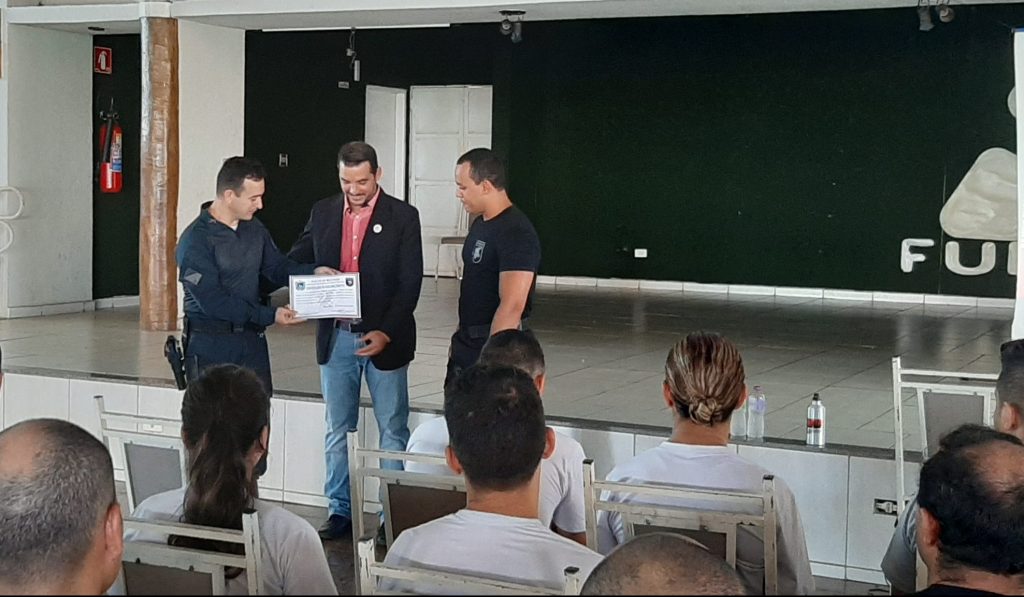 Campo Grande (MS) – Na manhã desta quinta-feira (16), 11 (onze) policiais militares do 1º Batalhão de Polícia Militar da região urbana centro juntamente com outros 21 (vinte e um) policiais militares voluntários das unidades operacionais da PMMS da capital, estiveram no auditório do CEDESC FUNLEC para uma palestra instrução com o Professor Mestre Ramon Ovando e realização do Teste Físico Militar para o IV CURSO DE APERFEIÇOAMENTE EM FORÇA TÁTICA (IV CAFT).