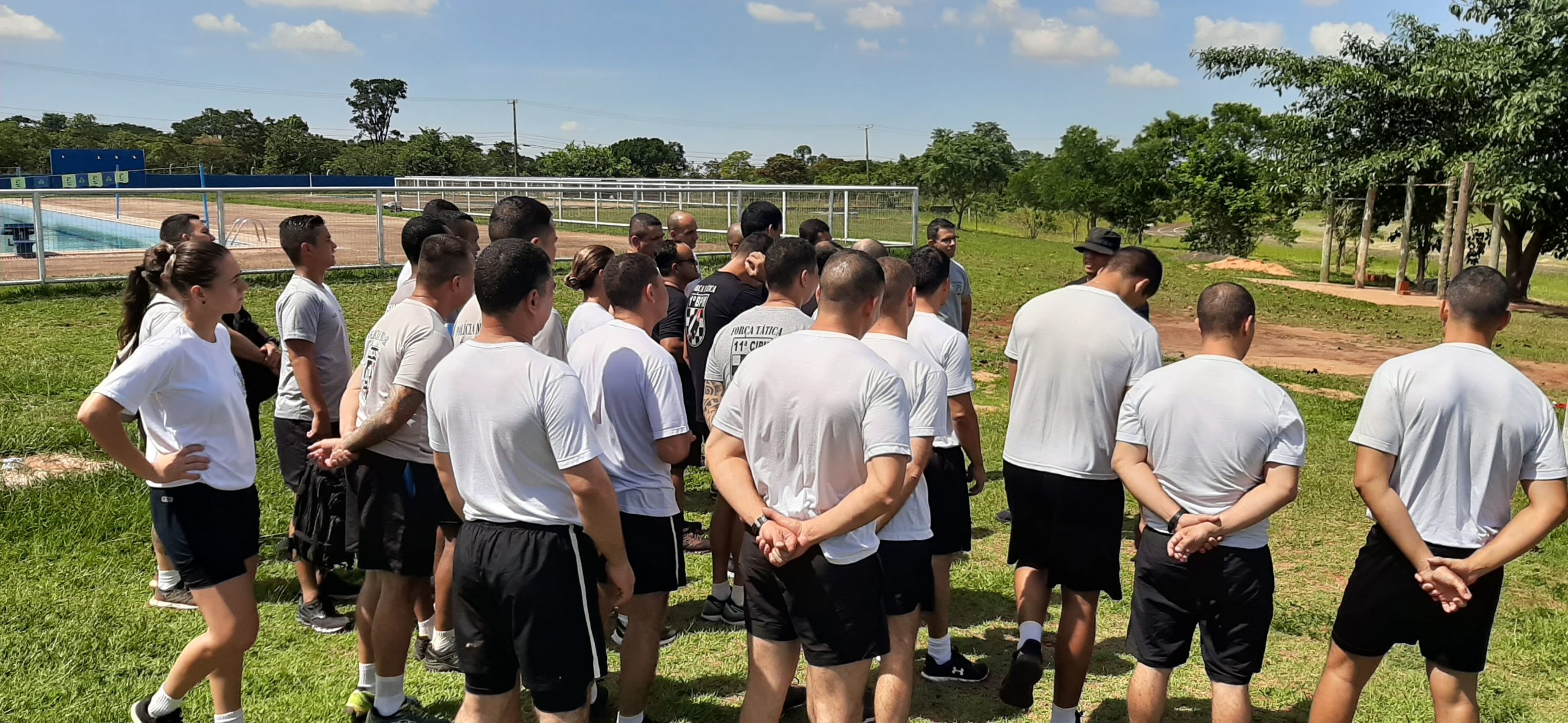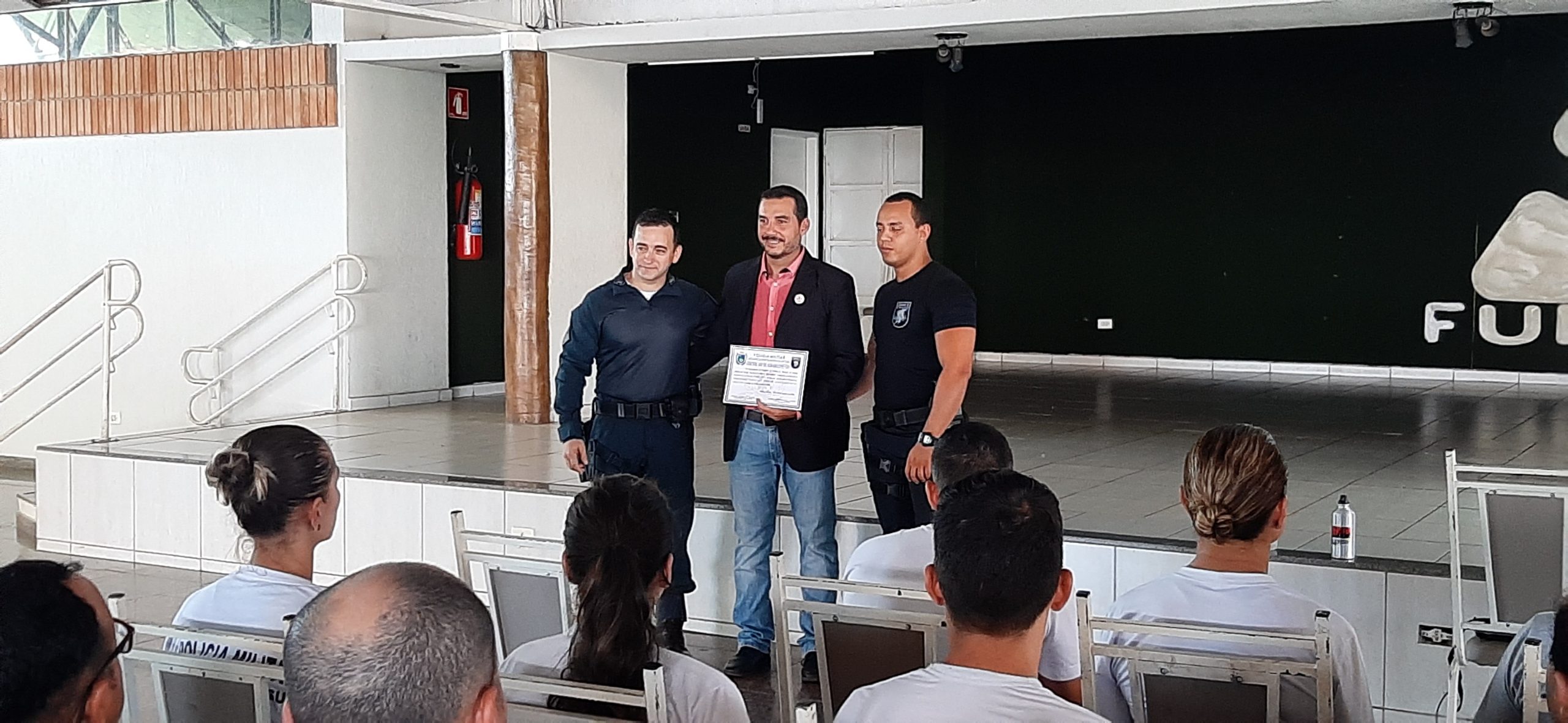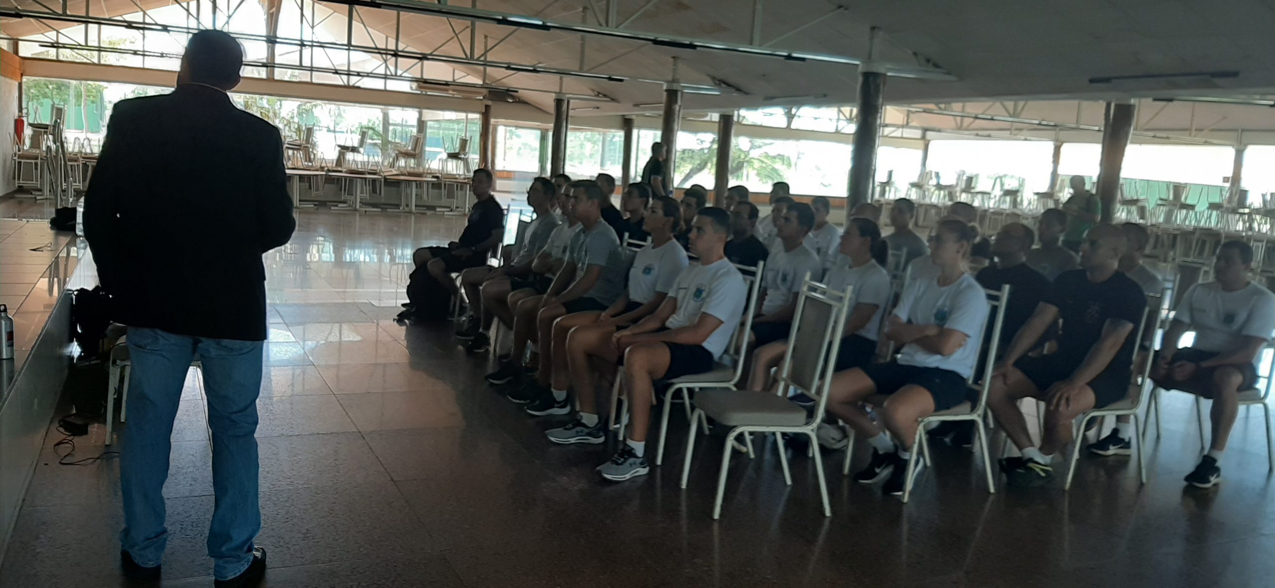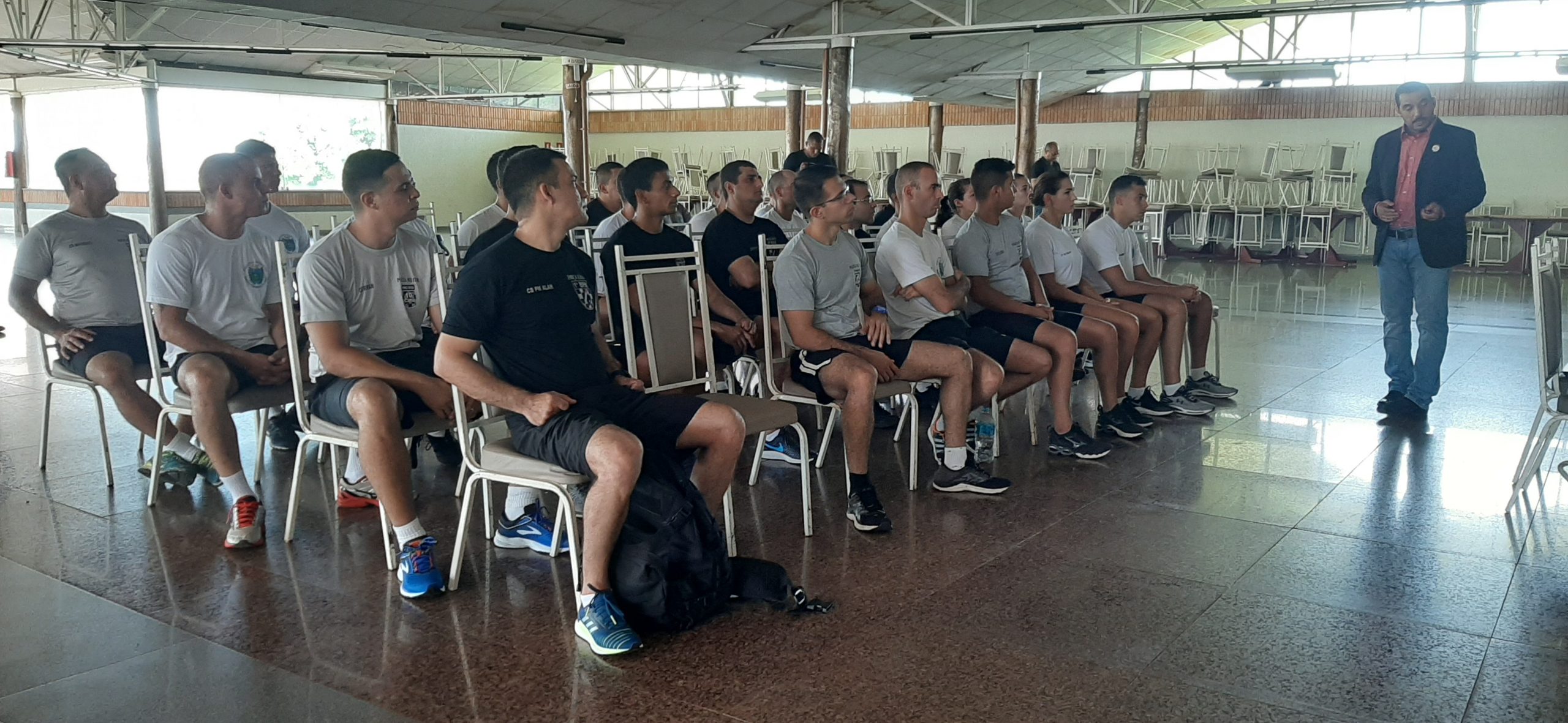 Campo Grande (MS) – Na manhã desta quinta-feira (16), 11 (onze) policiais militares do 1º Batalhão de Polícia Militar da região urbana centro juntamente com outros 21 (vinte e um) policiais militares voluntários das unidades operacionais da PMMS da capital, estiveram no auditório do CEDESC FUNLEC para uma palestra instrução com o Professor Mestre Ramon Ovando e realização do Teste Físico Militar para o IV CURSO DE APERFEIÇOAMENTE EM FORÇA TÁTICA (IV CAFT).
