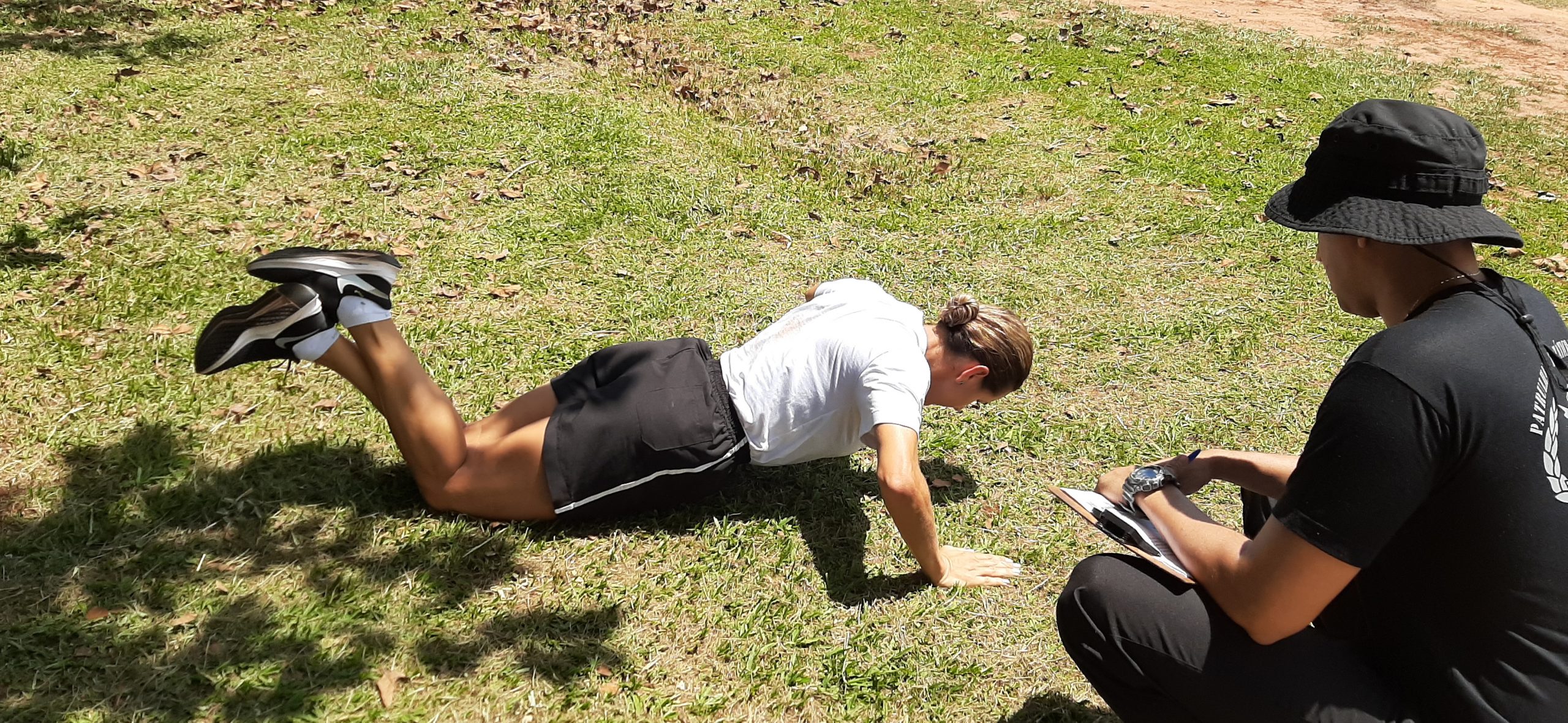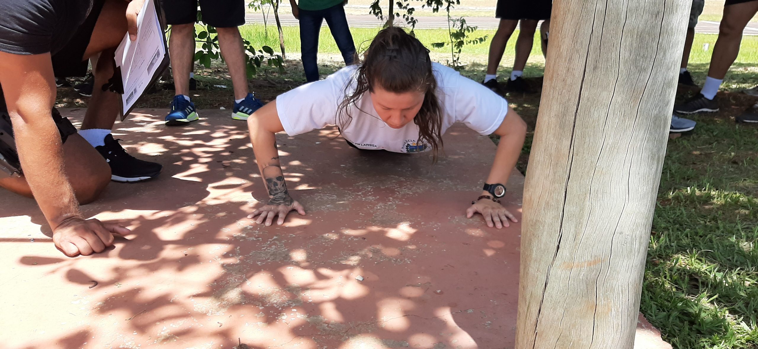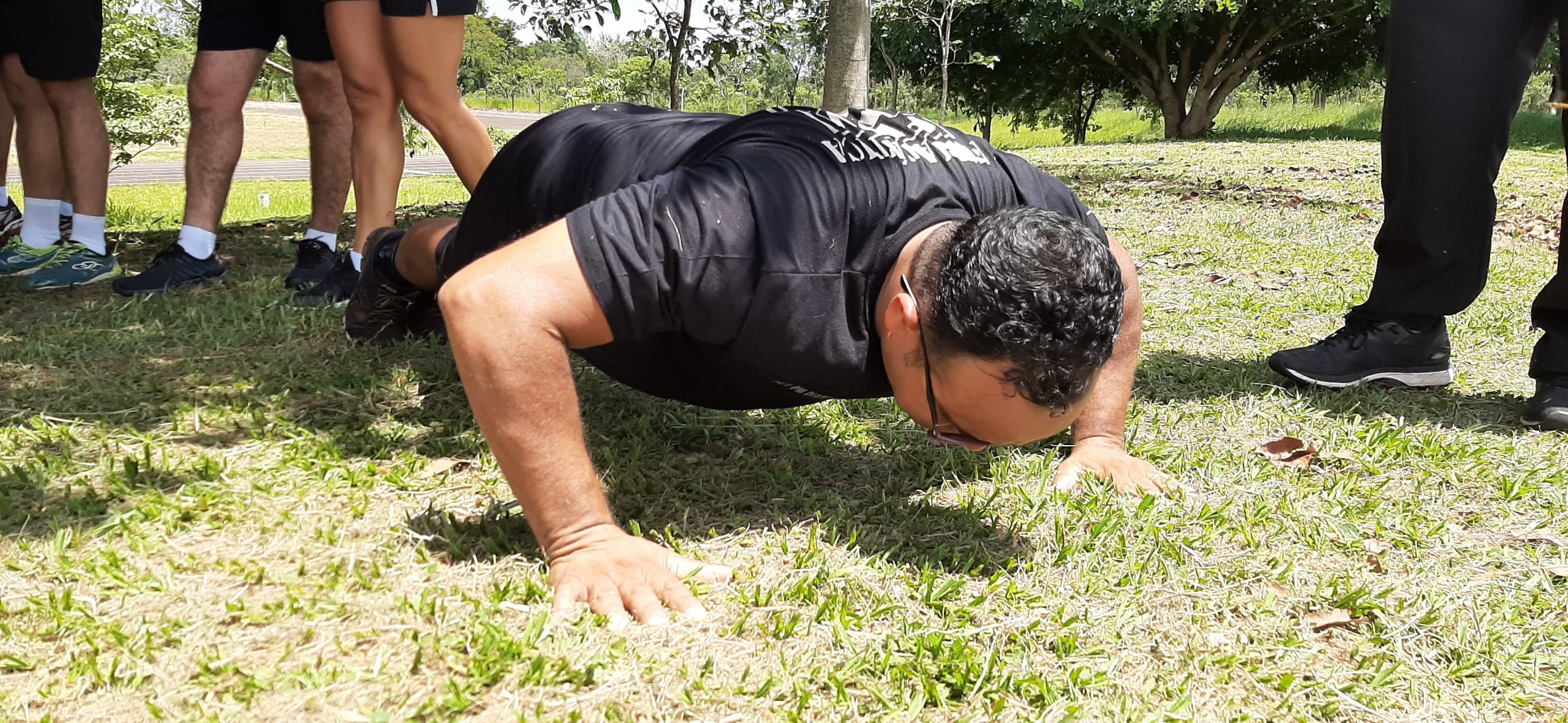 Após a palestra, os militares foram submetidos ao Teste de Aptidão Física (corrida de 12 minutos, abdominal e flexão na barra ou flexão de braços sobre o solo) por policiais militares do BPMChoque, mostrando estarem aptos para frequentar o curso que se inicia no próximo dia 20 de janeiro de 2020.