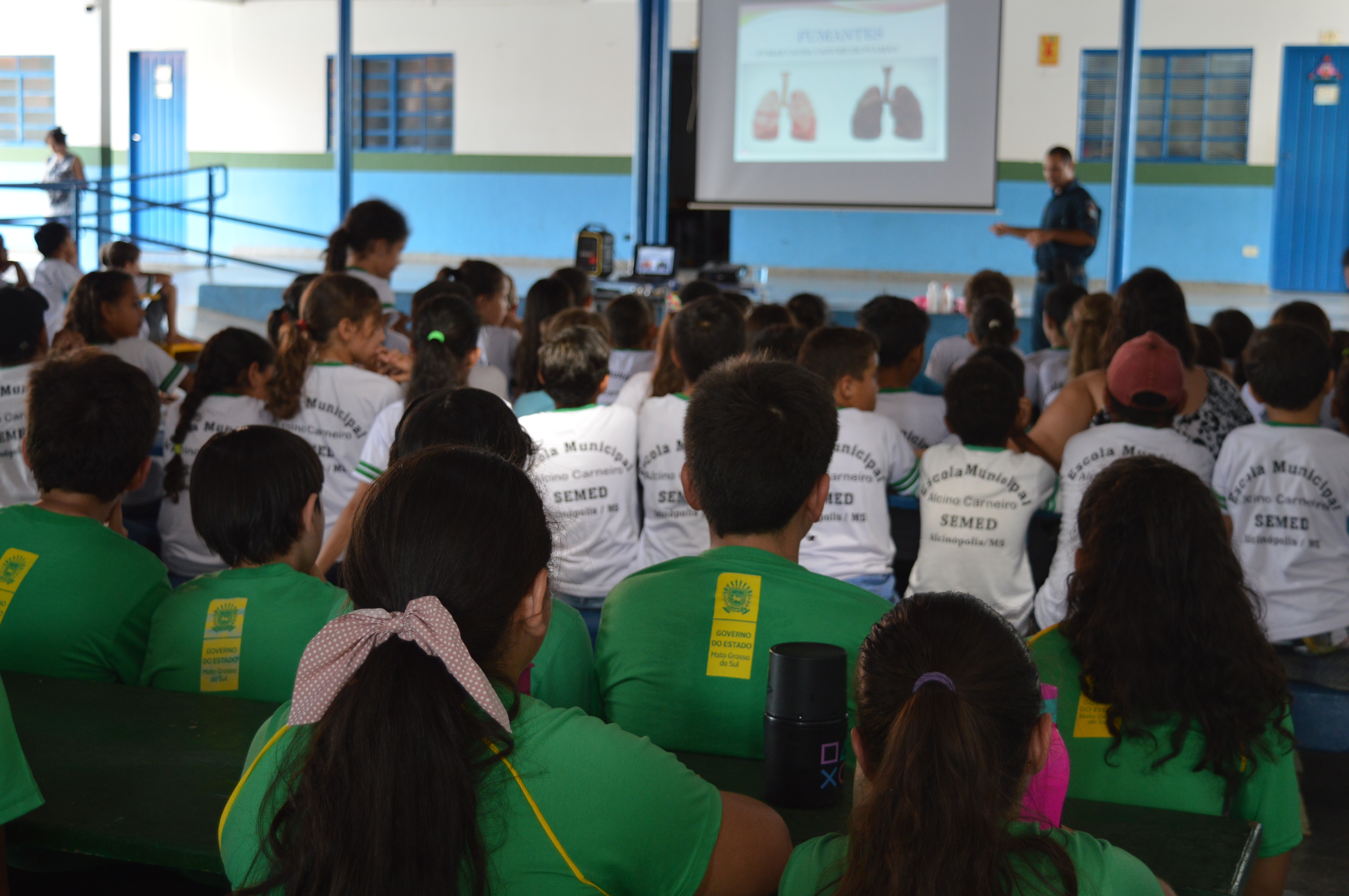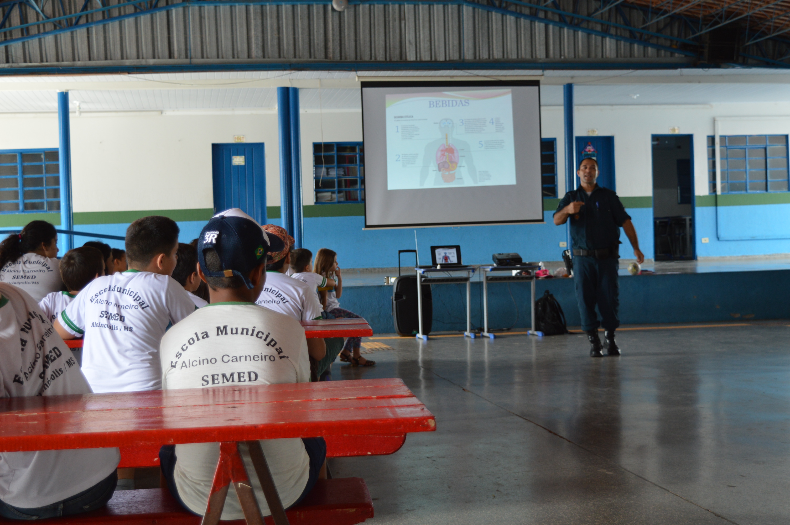 A palestra foi realizada na Escola Municipal Alcino Carneiro e ministrada pelo Cabo da Polícia Militar Célio Roberto da Silva Arruda, sendo destinada aos alunos do 1º ao 5º anos das escolas da rede estadual e municipal de ensino, sobre às drogas e suas conseqüências a saúde.