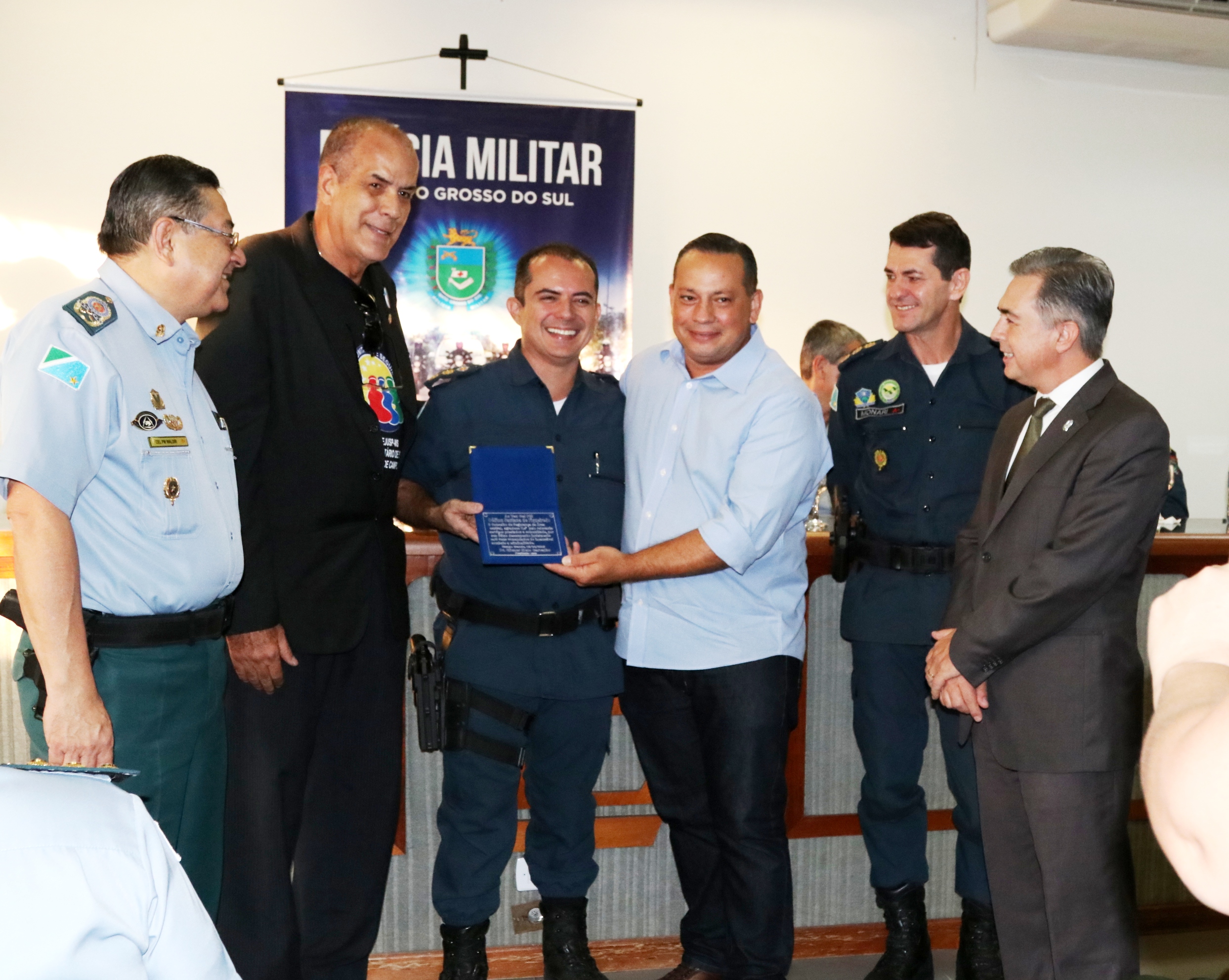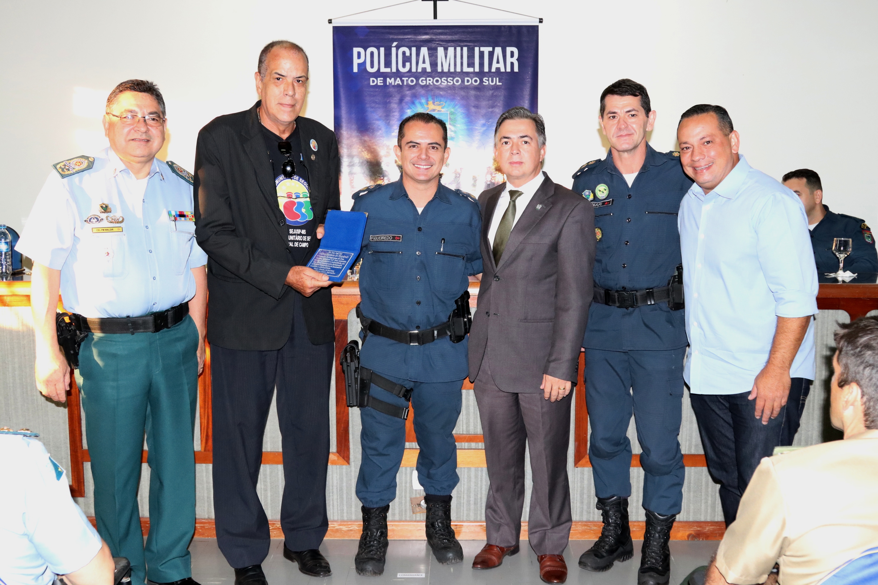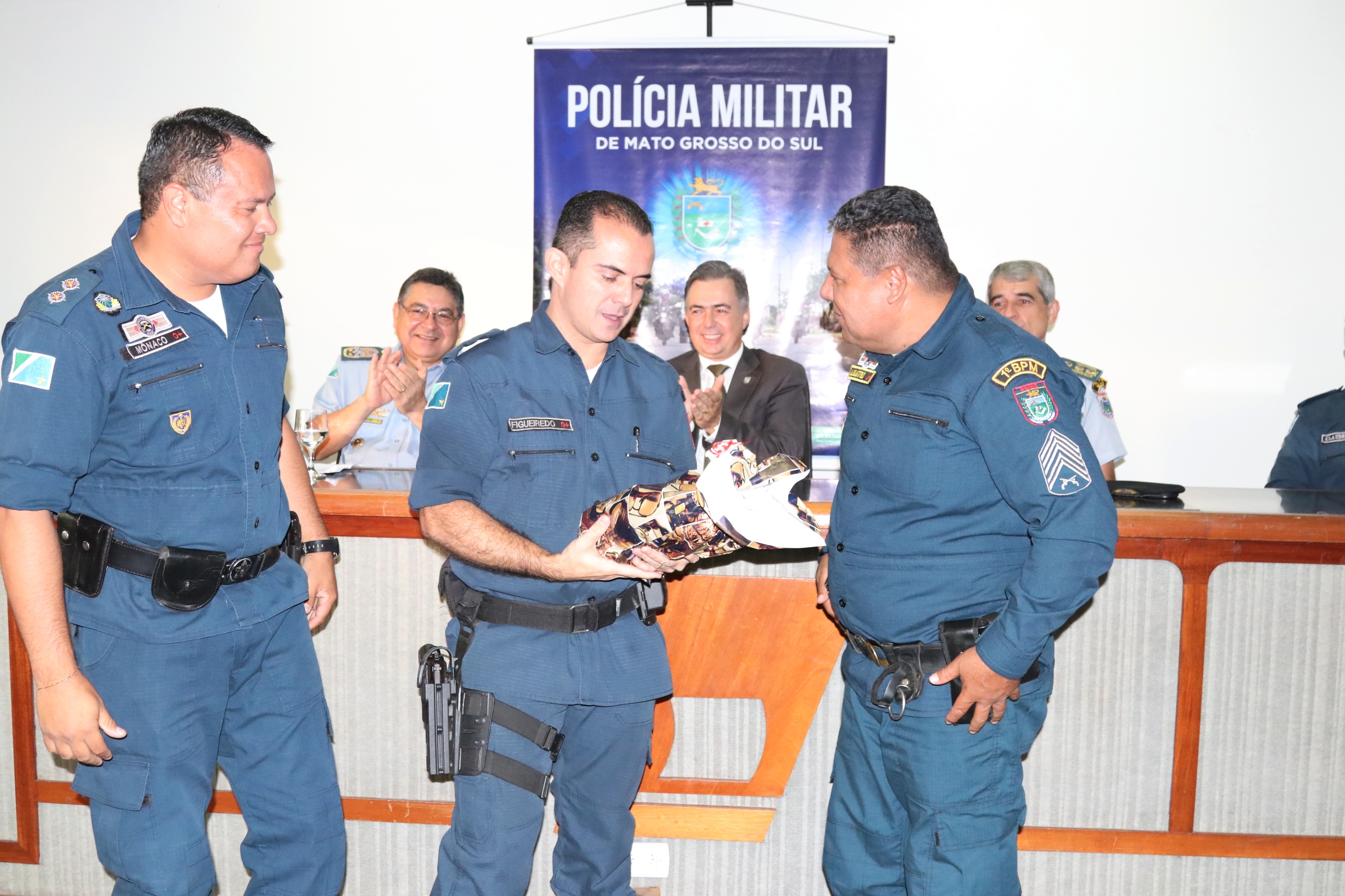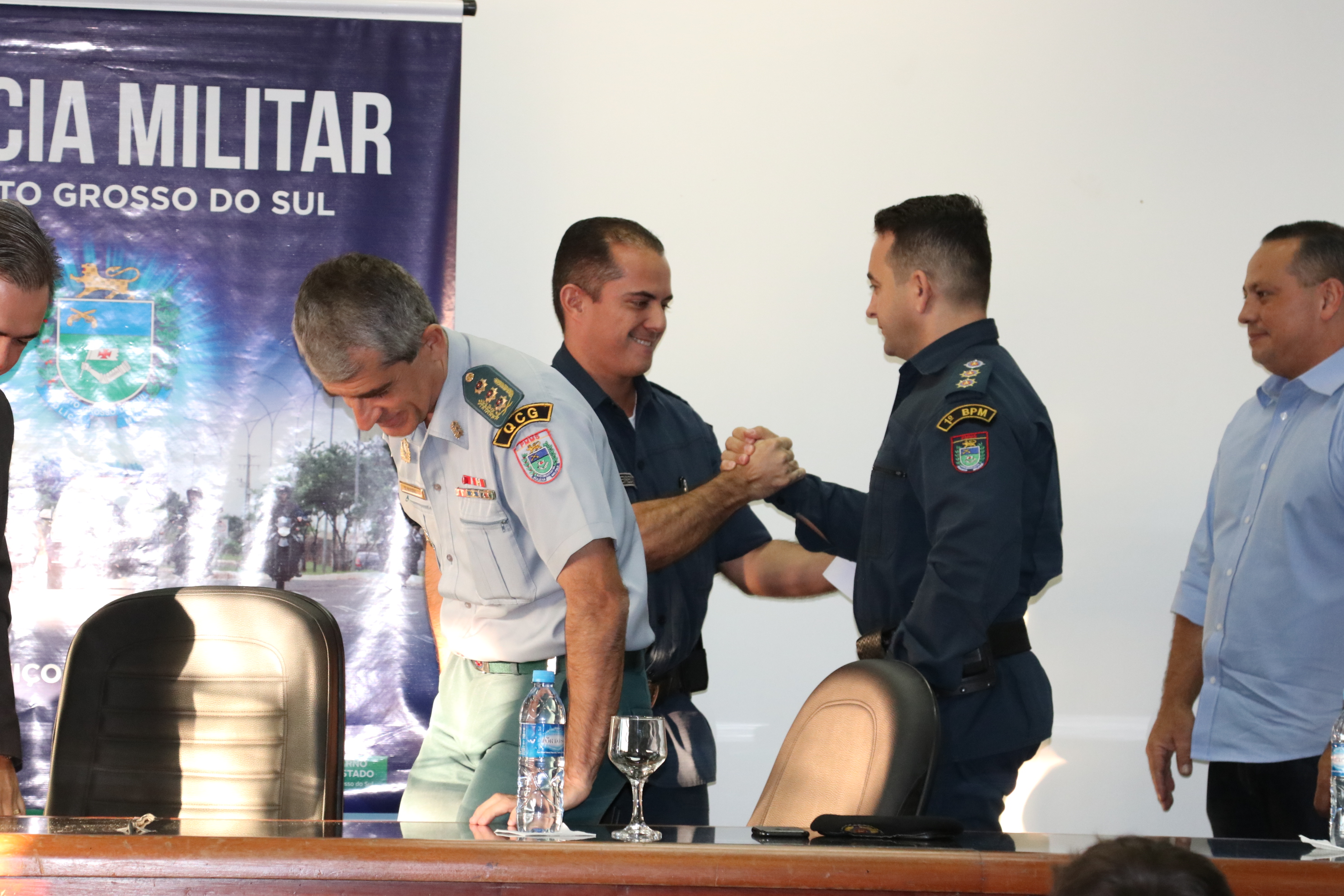 O comandante-geral da PMMS, coronel PM Waldir Ribeiro Acosta, agradeceu ao tenente-coronel Figueiredo pelo empenho e responsabilidade com que conduziu o 1º BPM antiga 5ª CIPM e felicitou o novo comandante do 1º BPM, tenente-coronel PM Claudemir, certo de que conduzirá toda a tropa da área central com honradez. No ensejo, o coronel PM Waldir prestou suas condolências aos familiares e amigos do Sgt PM Ronaldo do Departamento de Operações de Fronteira (DOF) que faleceu na data de hoje em um acidente de viatura.