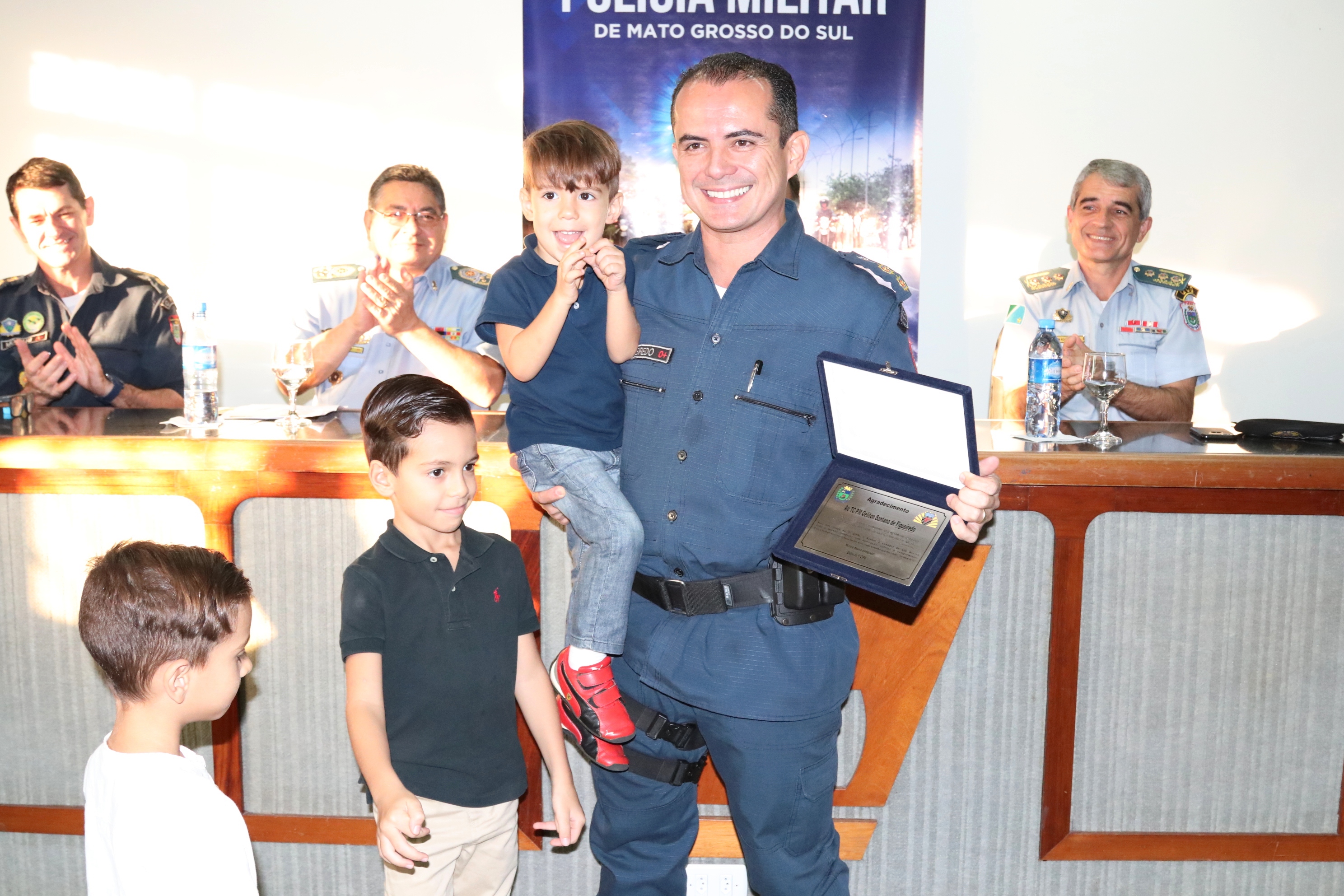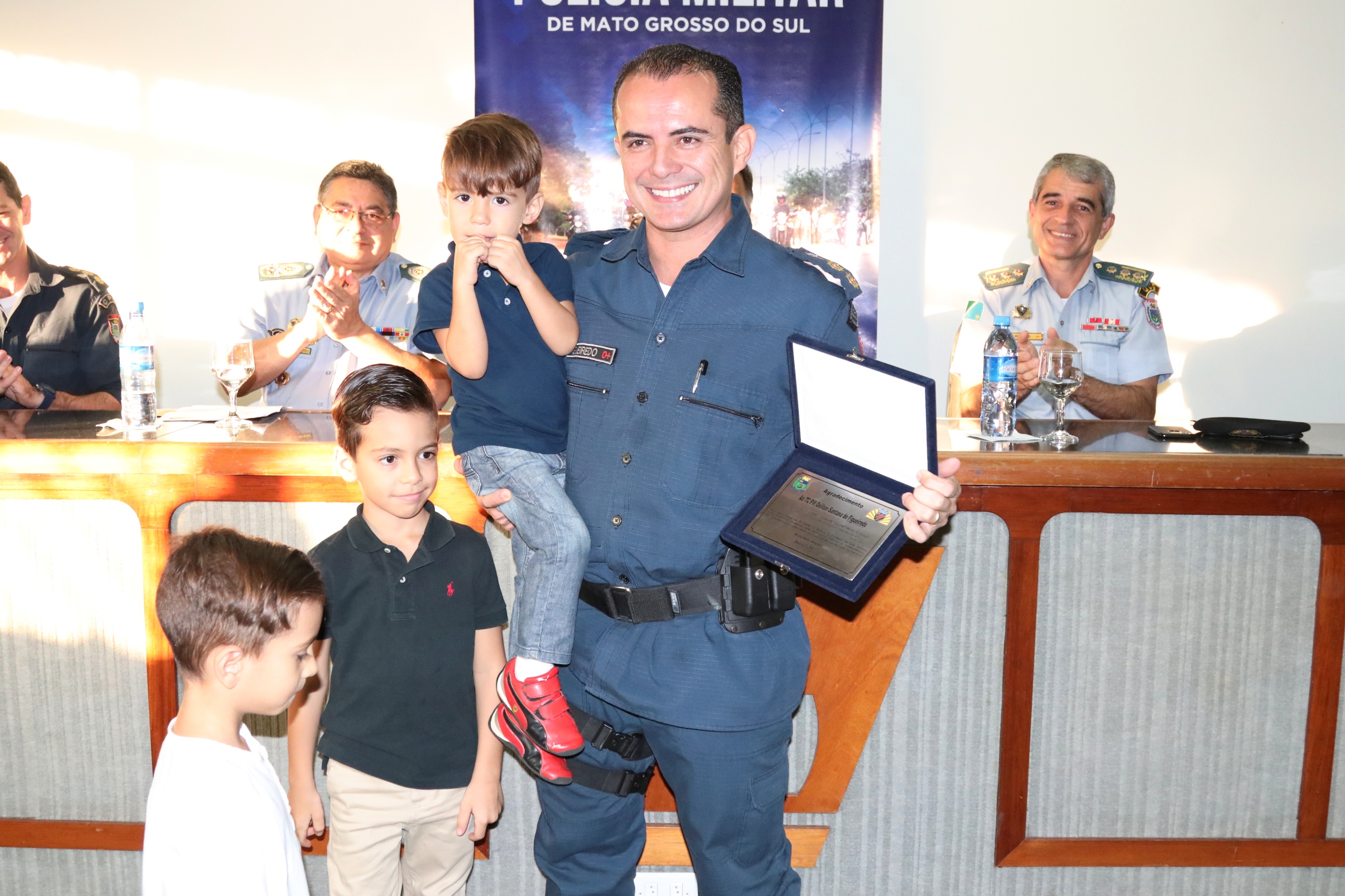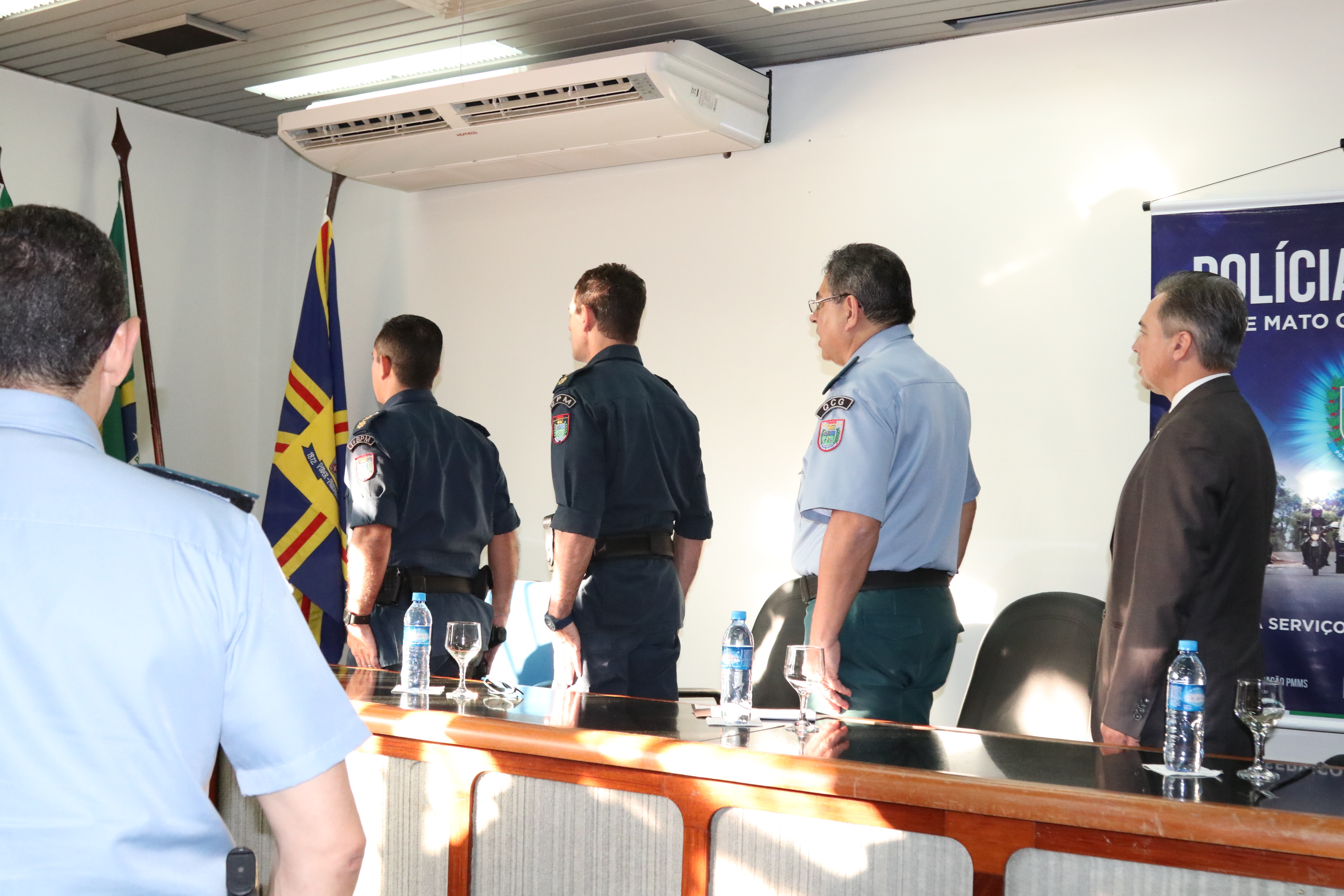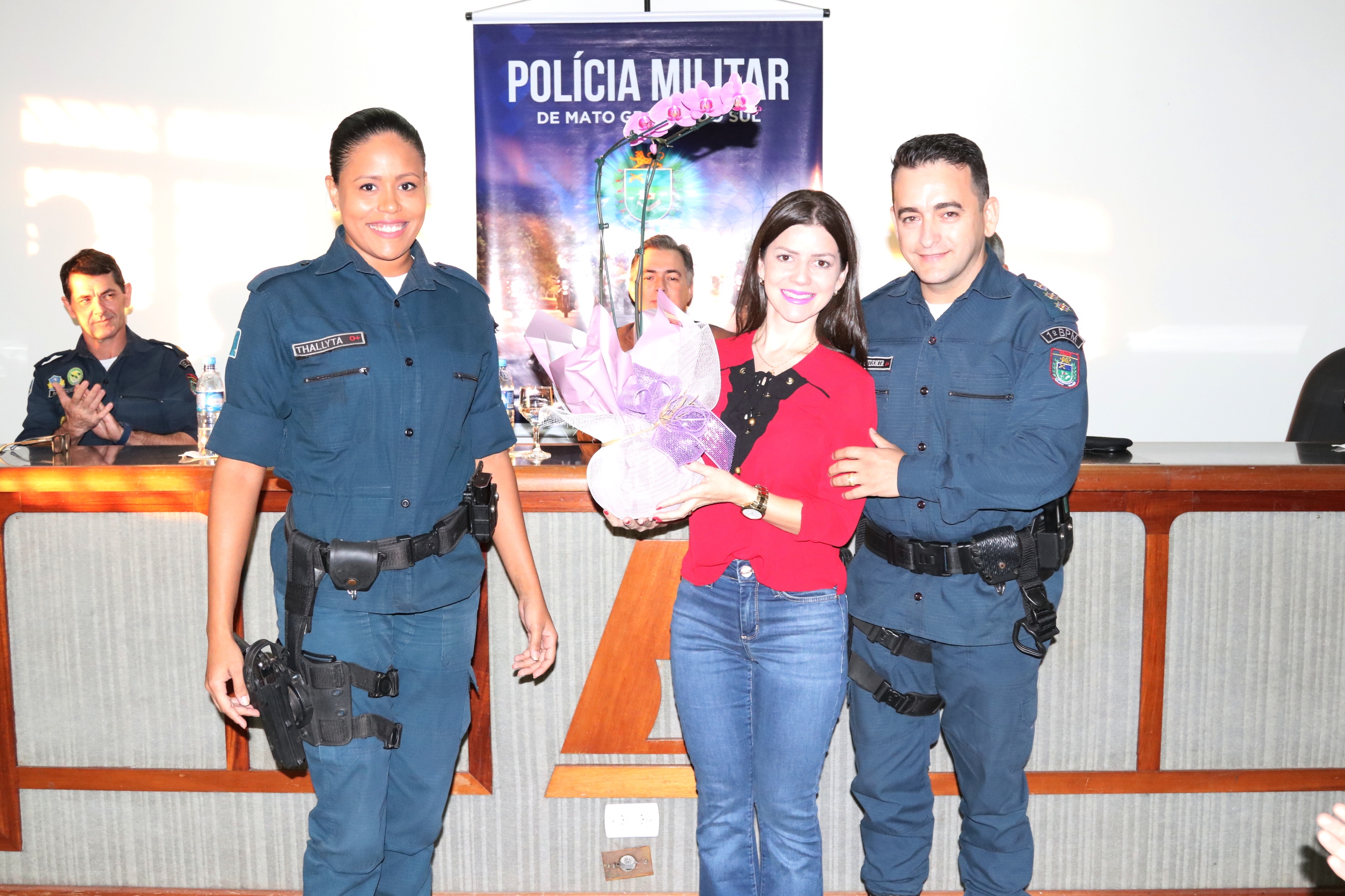 O comandante-geral da PMMS, coronel PM Waldir Ribeiro Acosta, agradeceu ao tenente-coronel Figueiredo pelo empenho e responsabilidade com que conduziu o 1º BPM antiga 5ª CIPM e felicitou o novo comandante do 1º BPM, tenente-coronel PM Claudemir, certo de que conduzirá toda a tropa da área central com honradez. No ensejo, o coronel PM Waldir prestou suas condolências aos familiares e amigos do Sgt PM Ronaldo do Departamento de Operações de Fronteira (DOF) que faleceu na data de hoje em um acidente de viatura.