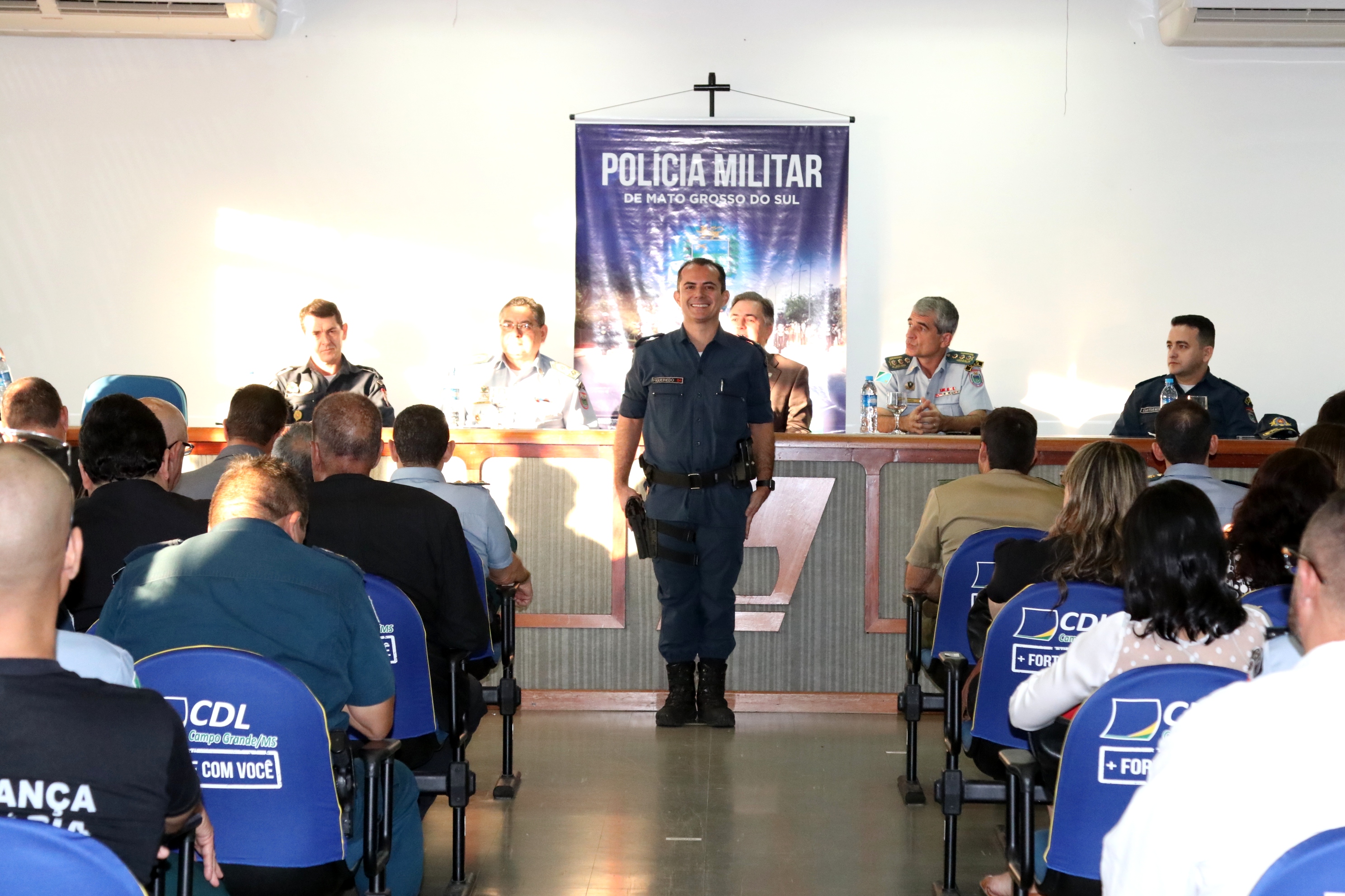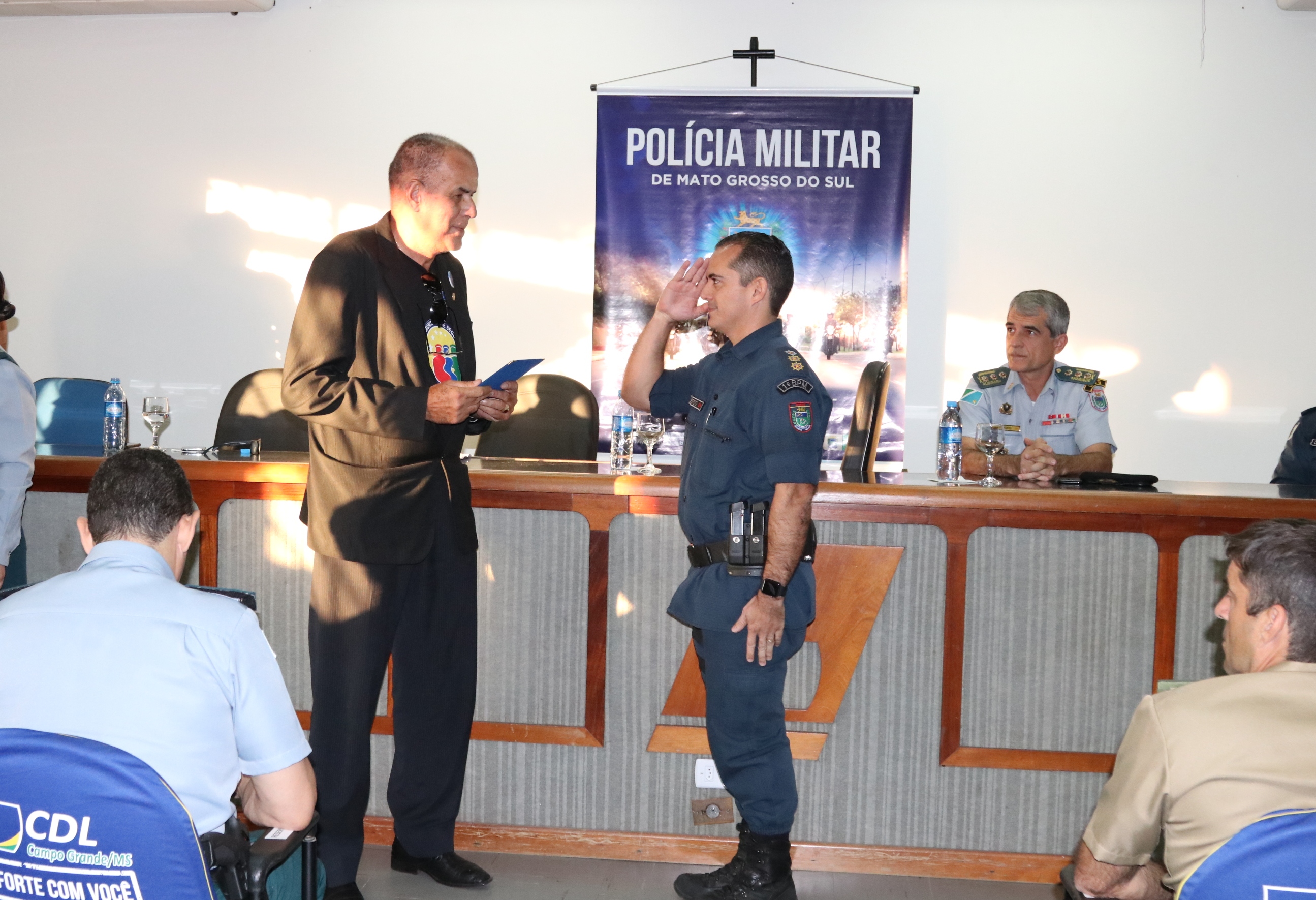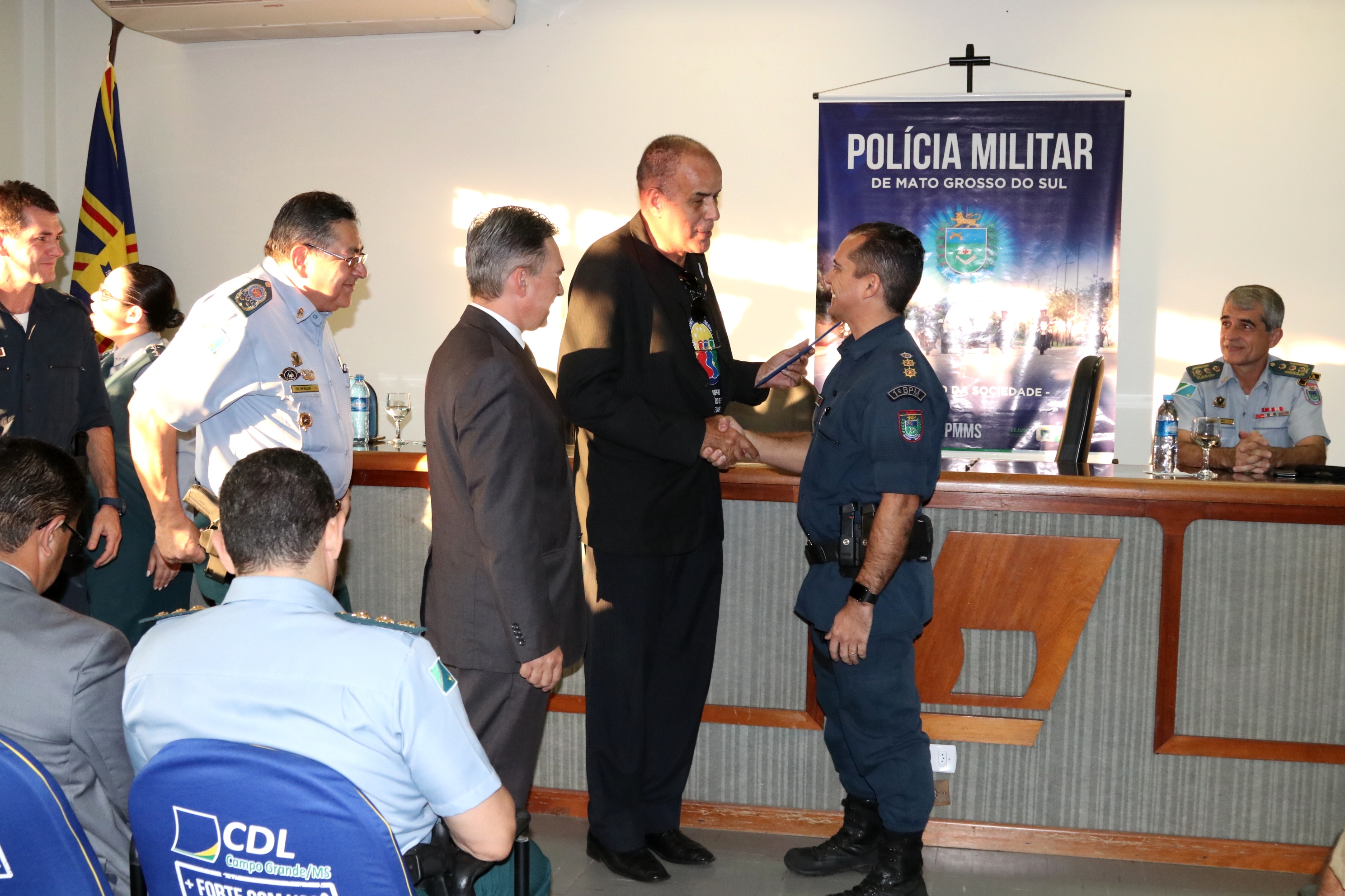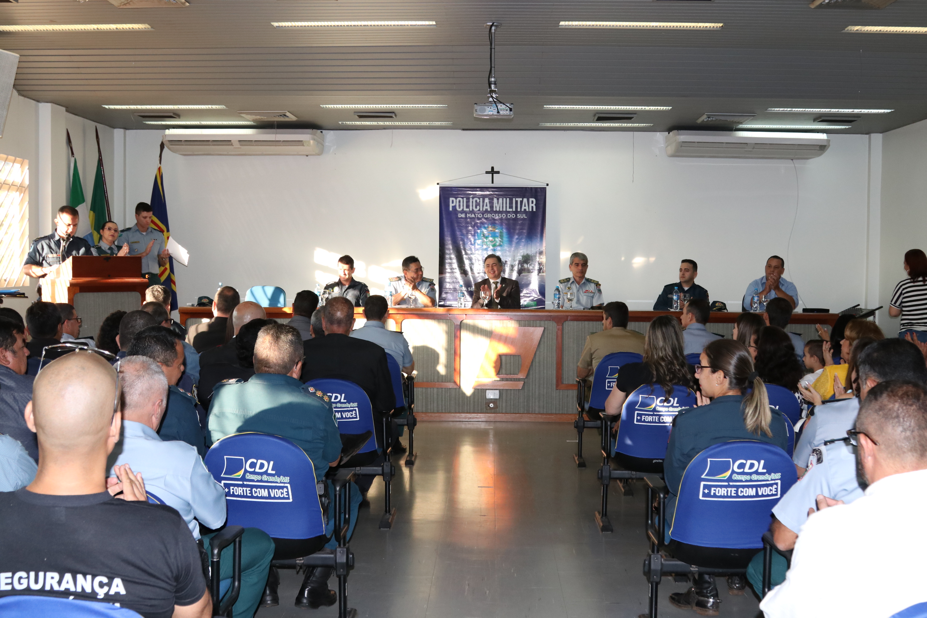 Campo Grande (MS) – A Polícia Militar do Estado de Mato Grosso do Sul, realizou na tarde de hoje (13/04), a solenidade passagem de comando do 1º Batalhão de Polícia Militar, do tenente-coronel PM Oéliton Santana de Figueiredo para o tenente-coronel PM Claudemir de Melo Domingos Braz, a cerimônia que ocorreu no auditório da Câmara de Dirigentes Lojistas – CDL, contou com a presença de diversas autoridades.