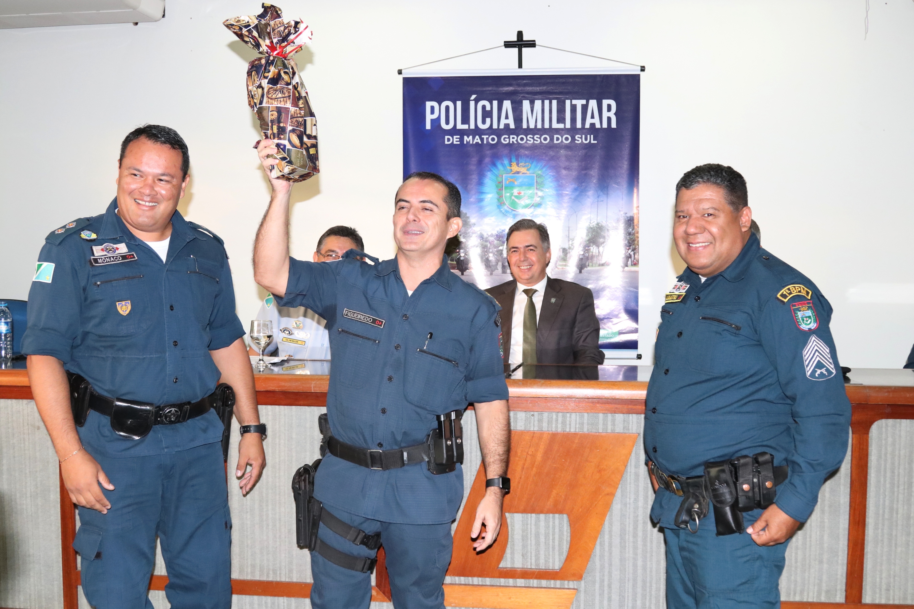 O Secretário de Estado de Justiça e Segurança Pública, Antônio Carlos Videira, parabenizou o tenente-coronel Figueiredo pelo trabalho que vem desempenhando ao longo de sua carreira na Polícia Militar de Mato Grosso do Sul e felicitou o novo comandante, tenente-coronel PM Claudemir que chega para dar continuidade ao excelente trabalho que foi desenvolvido na área central de Campo Grande a frente do 1º BPM.