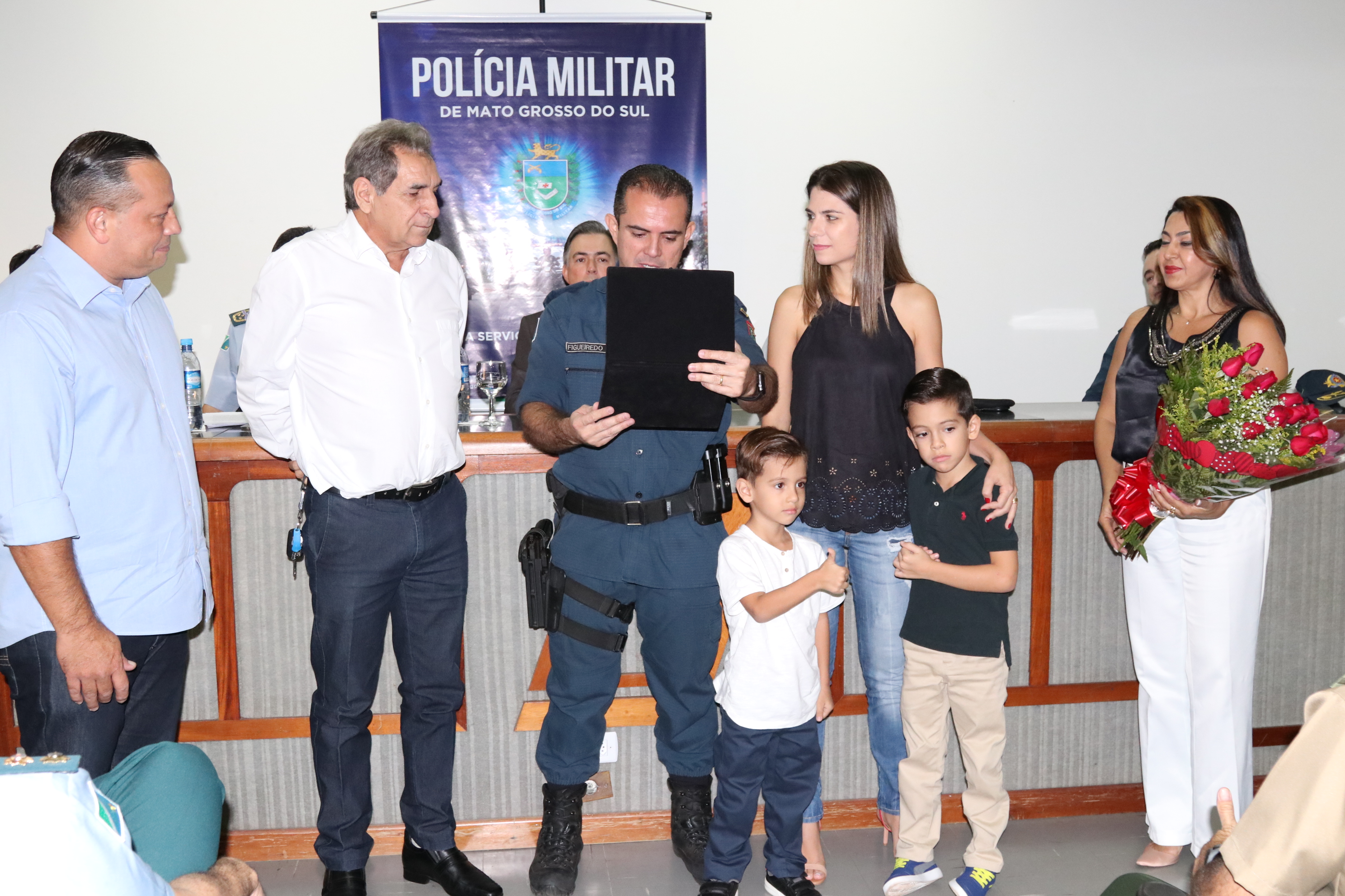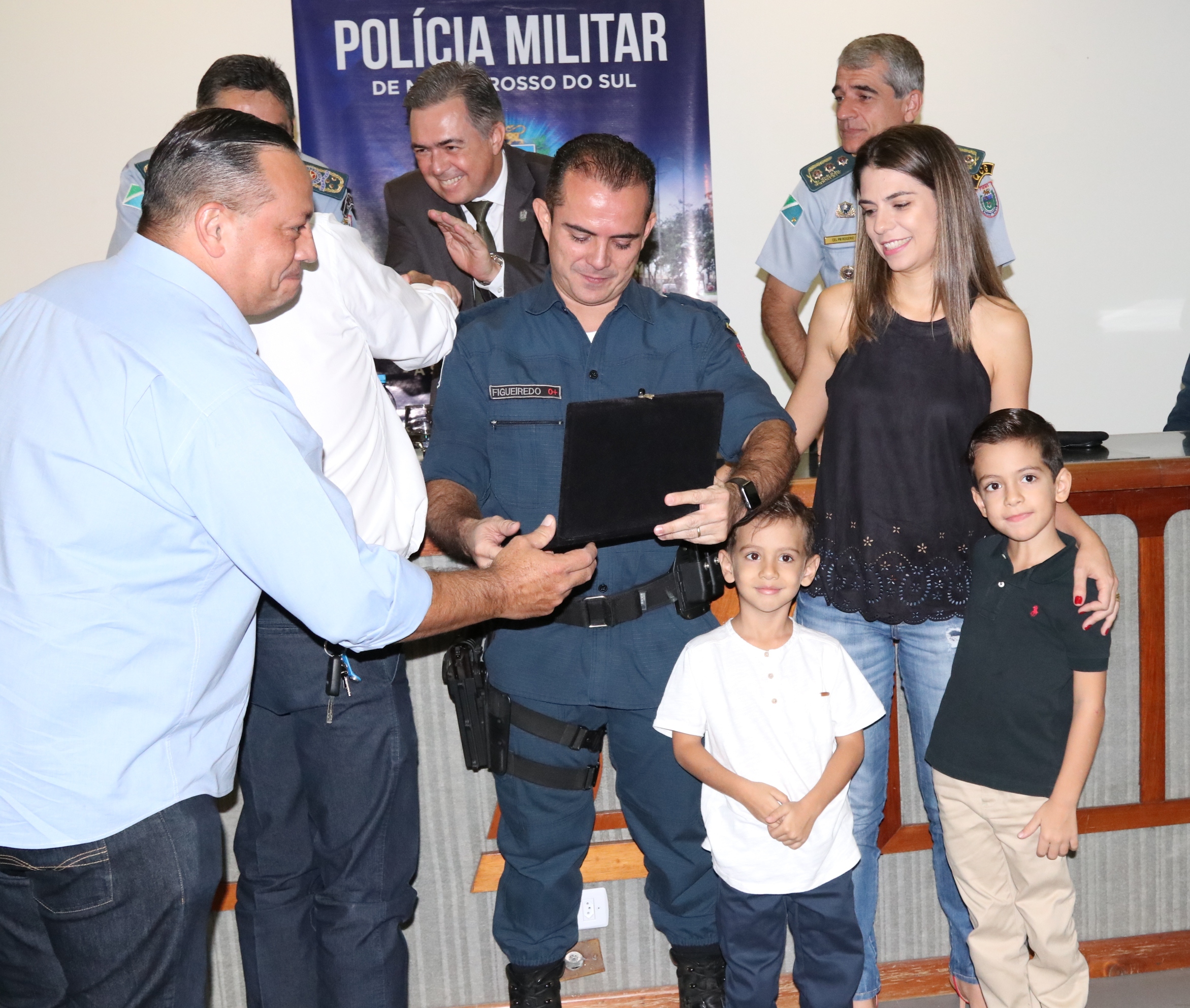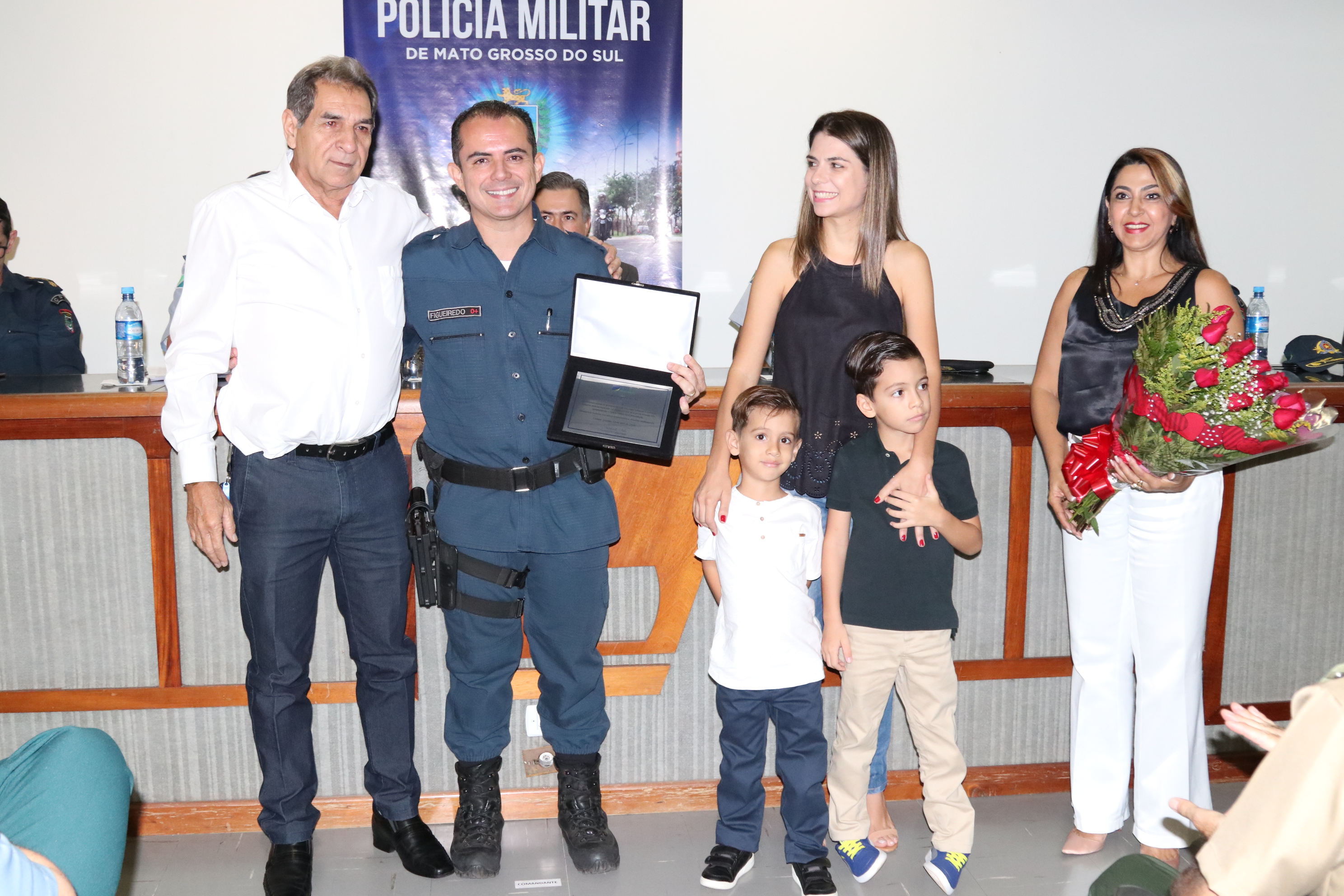 Acompanhado de seus familiares o tenente-coronel Figueiredo recebeu diversas homenagens, dentre elas, o Presidente da Câmara dos Dirigentes Logistas, sr. Adelaido Vila, que demonstrou toda gratidão pelo forma honrada com que tratou a toda comunidade campo-grandense.