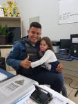 Onde foram muito bem recebidos pelas crianças (5 a 6 anos) e os jovens do IFMS, todos quiseram tirar uma foto com a guarnição.