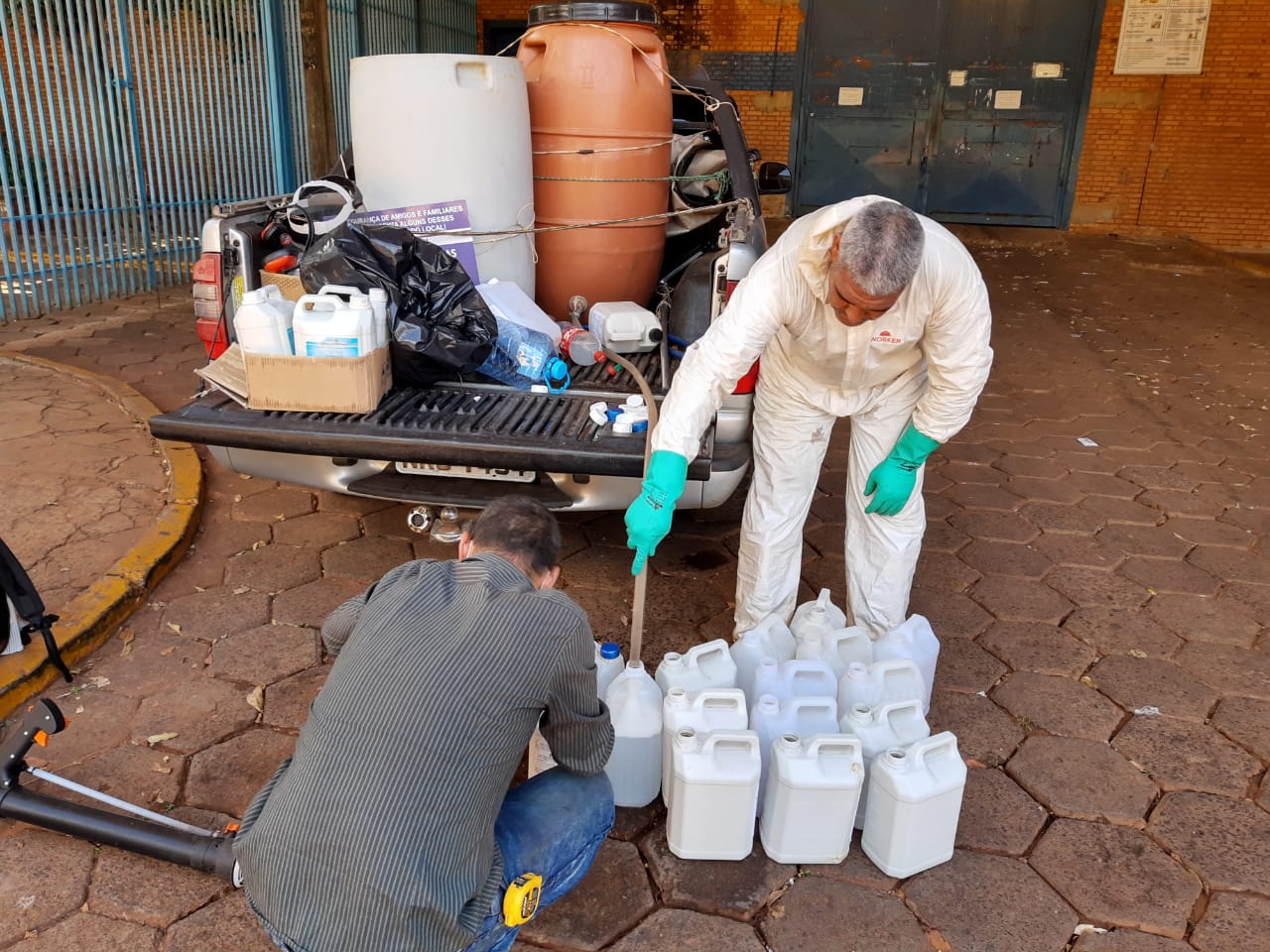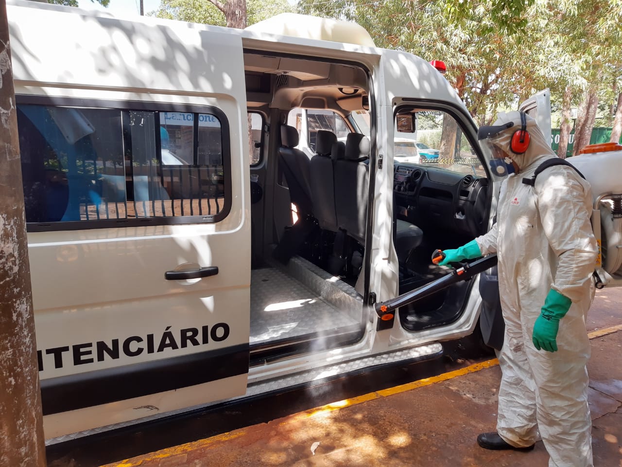 Campo Grande (MS) – A Polícia Militar do Estado de Mato Grosso do Sul, realizou a sanitização de todo o Complexo do Presídio Militar Fechado, Semi Aberto e Aberto, bem como todas as estruturas físicas do Batalhão de Guarda e Escolta – BPMGdaE, áreas externas e internas e viaturas que receberam igual cuidado, sendo higienizado seu interior, exterior e até mesmo o compartimento de transporte de Detentos Militares e Civis, com um considerável volume de produtos bactericidas e virícidas da família dos Quaternários de Amônia a base de Hipoclorito de sódiosódio. Toda essa ação é para prevenção de possíveis contágios com o agente patogênico Covid-19.