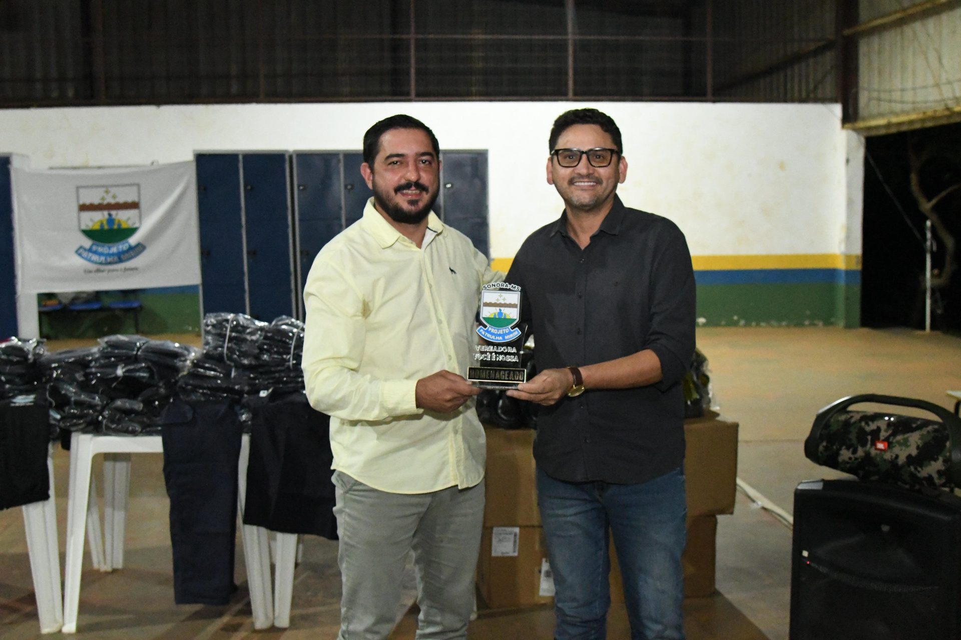 Estiveram presentes na cerimônia o Comandante da Polícia Militar de Sonora, Tenente Agnaldo Santos de Oliveira, a Prefeita Municipal Clarice Ewerling, o Presidente da Câmara Municipal Laudir Júnior, o Gerente de Educação Josevan Lopes, além de vereadores e representantes da assistência social.