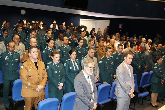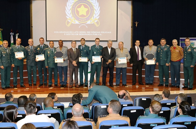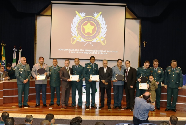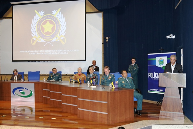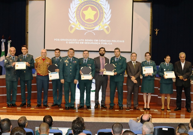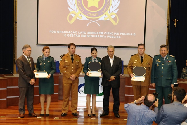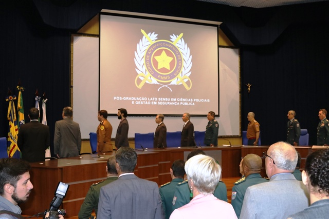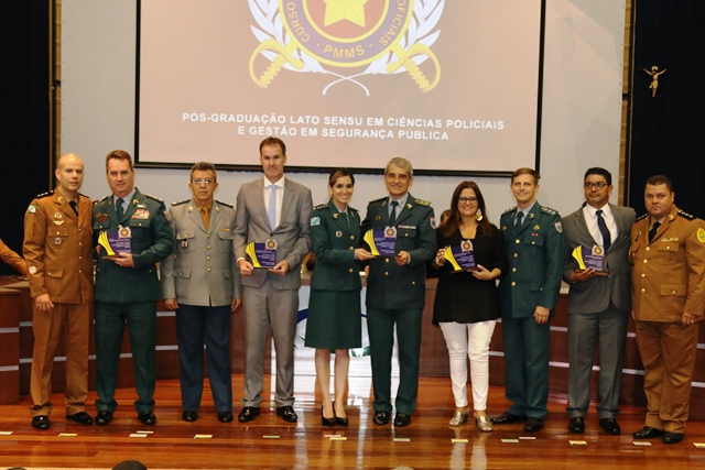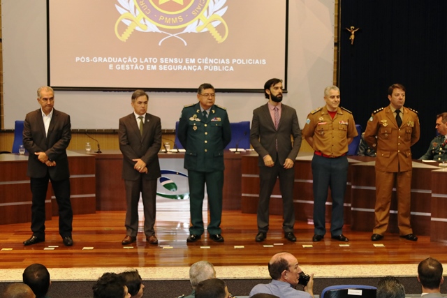 Participaram da cerimônia o Governador do Estado de Mato Grosso do Sul, Reinaldo Azambuja, o secretário da SEJUSP, Antônio Carlos Videira, o comandante-geral da PMMS, coronel PM Waldir Ribeiro Acosta, o comandante-geral do Corpo de Bombeiros, coronel BM Joilson Alves do Amaral, representando o comandante-geral da PMPR, o coronel PM Mauro Celso Monteiro, Diretor de Ensino e Pesquisa da Polícia Militar do Paraná, o Chefe do Estado-Maior-Geral da PMMS, coronel PM Paulo Rogério de Carvalho, o Comandante da Academia da PMMS, coronel PM Cláudio Roberto Monteiro Ayres, o Secretário Executivo da FAPEMS, André Mazini, representando o Magnífico Reitor da Universidade Estadual de Mato Grosso do Sul, Doutor Fábio Edir dos Santos Costa, entre outras autoridades.