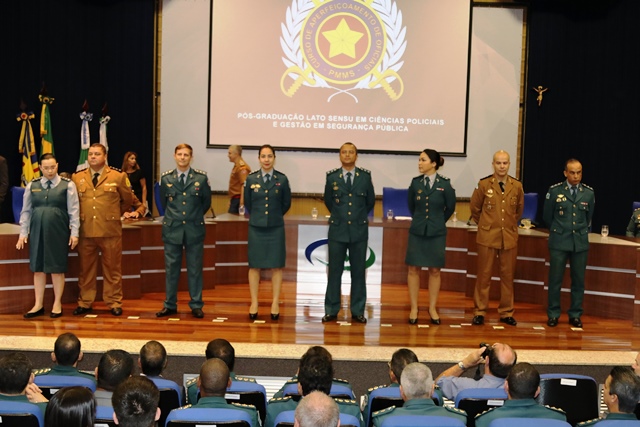 O Comandante-Geral da PMMS, coronel Waldir Ribeiro Acosta, falou aos formandos da importância do aprimoramento para a ascensão ao oficialato superior que vem contribuir com a Segurança Pública do Estado e felicitou a todos os capitães pela conclusão do curso, principalmente as mulheres que ocuparam as primeiras colocações do curso e a cada dia mais têm ocupado lugar de destaque na corporação. “O CAO se faz necessário para o aperfeiçoamento dos capitães, beneficiando não só toda a instituição, mas essencialmente a Segurança Pública e toda a população com projetos e novas ideias nas unidades operacionais, contribuindo com a segurança em nosso Estado. Quero parabenizar a todos os formandos que se dedicaram para concluir o curso de forma honrada e exemplar”, O coronel PM Waldir prestou seus sentimentos ao Sgt PM Ronaldo do Departamento de Operações de Fronteira (DOF) que faleceu na data de hoje em um acidente de viatura.