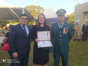 O Comandante do 8° Batalhão de Polícia Militar Tenente Coronel J. Roberto, esteve presente prestigiando os agraciados, entre eles, a senhora Etiene Cintia Ferreira Chagas – Presidente do Conselho Comunitário de Segurança Pública de Nova Andradina e o 1° Tenente Harley de Freitas Barbosa, Comandante da 2° Companhia de Polícia Militar de Ivinhema. Ambos foram reconhecidos e agraciados pelos excelentes serviços prestados a segurança pública e a população do Vale do Ivinhema.