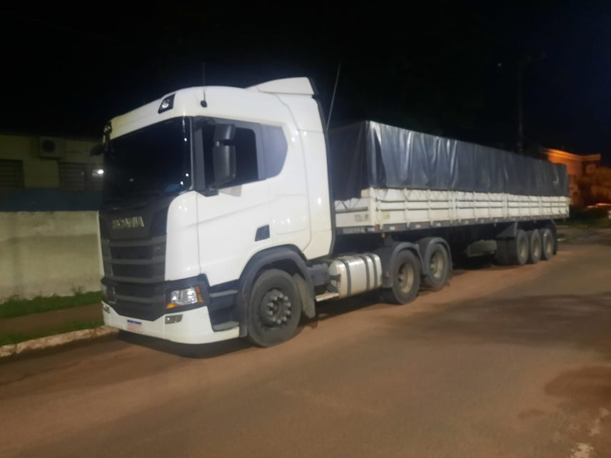 A equipe policial realizava o policiamento ordinário quando recebeu uma informação via central 190 de que uma carreta estaria fora de rota e sua localização se mostrava pelas imediações desta cidade. Em posse das informações as equipes policiais deslocaram em rondas pelas saídas da cidade, sendo que ao chegar no anel viário próximo ao trevo sentido a cidade de Taquarussu, foi visualizada a carreta parada ao lado da via.