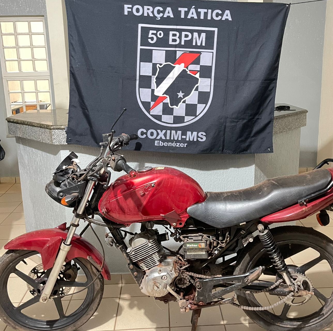 Imediatamente, a guarnição se deslocou até o endereço informado e constatou que se tratava de uma Yamaha Factor, cor vermelha, que havia sido furtada dias antes. Diante da situação, os policiais encaminharam o veículo até a Delegacia de Polícia Civil, onde serão adotadas as medidas legais.